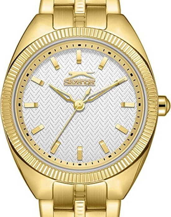 Slazenger SL.09.2344.4.07 — элегантные женские часы, сочетающие современный дизайн и функциональность. Корпус выполнен из суперметалла с PVD-покрытиемPVDУльтратонкое покрытие наносится в технике вакуумного напыления, сочетает в себе нитрид титана особой прочности со слоем золота или оксида хрома. Несёт в себе декоративную или защитную функцию., придающей модели прочность и изысканный внешний вид. Минеральное стеклоМинеральное стеклоМинеральное стекло представляет собой искусственно выращенный минерал кварца. Такое стекло отличается особой устойчивостью к повреждениям и царапинам. Уступает по некоторым качествам сапфировому стеклу. защищает циферблат от царапин и гарантирует превосходную читаемость. Циферблат с золотистыми метками и стрелками подчёркивает классический стиль модели. Браслет из суперметалла с PVD-покрытиемPVDУльтратонкое покрытие наносится в технике вакуумного напыления, сочетает в себе нитрид титана особой прочности со слоем золота или оксида хрома. Несёт в себе декоративную или защитную функцию. обеспечивает комфортное ношение и надёжную фиксацию на запястье. Функциональность дополняется индикацией даты, повышая удобство использования. Водонепроницаемость 30 метров делает модель устойчивой к случайным брызгам, идеально подходя для повседневного использования.