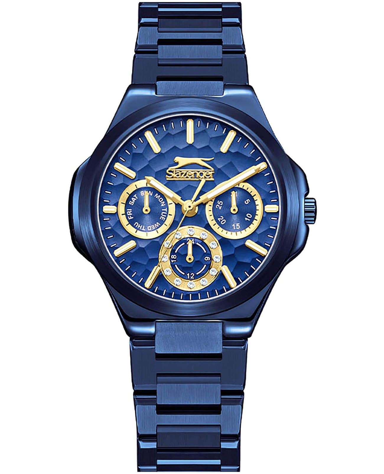 Женские кварцевые часы Slazenger SL.09.2365.4.04 – это сочетание элегантности, современного стиля и надёжности. Изящный корпус из суперметалла с IP-покрытиемIP-покрытиеМетод ионного напыления. Демонстрирует повышенную устойчивость к истиранию, окислению и химическим веществам. Под воздействием высокого давления и температуры около 1500°C молекулы металла надёжно соединяются с частицами корпуса часов. синего цвета, диаметром 33 мм и толщиной 10 мм, подчёркивает утончённость модели и делает их идеальным аксессуаром для любой ситуации – будь то деловая встреча, романтический вечер или повседневные выходы. Циферблат надёжно защищён минеральным стекломМинеральное стеклоМинеральное стекло представляет собой искусственно выращенный минерал кварца. Такое стекло отличается особой устойчивостью к повреждениям и царапинам. Уступает по некоторым качествам сапфировому стеклу., которое устойчиво к механическим повреждениям и сохраняет кристальную прозрачность. Браслет из суперметалла с IP-покрытиемIP-покрытиеМетод ионного напыления. Демонстрирует повышенную устойчивость к истиранию, окислению и химическим веществам. Под воздействием высокого давления и температуры около 1500°C молекулы металла надёжно соединяются с частицами корпуса часов. удобно облегает запястье и фиксируется с помощью раскладной застёжкиРаскладная застёжкаТакой тип застёжки используется только на браслетах из металла. Она никогда не раскрывается полностью, происходит разделение на 2 и более частей. Раскладывающая застёжка снизит вероятность потери часов к минимуму., обеспечивая надёжность и комфорт в повседневном ношении. Утончённый стиль, внимание к деталям и практичность делают эту модель идеальным выбором для современных женщин, ценящих эстетику и функциональность. Стрелки и метки покрыты люминесцентным покрытиемЛюминесцентное покрытиеПозволяет считывать показания времени в темноте. Производители наносят на стрелки, часовые индексы, безель или поверхность циферблата светонакопительный состав, дающий холодное свечение., обеспечивающим отличную читаемость в темноте. Вынесенный циферблат с 24-х часовым указателем времени украшен фианитами. Водозащита до 30 метров позволит защитить корпус от случайных брызг или капель дождя.