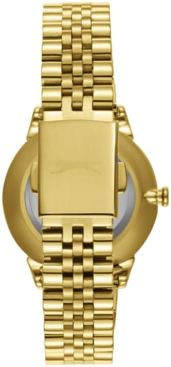 Женские кварцевые часы Slazenger SL.09.2373.3.05 – это сочетание элегантности, современного стиля и надёжности. Изящный корпус из суперметалла с IP-покрытиемIP-покрытиеМетод ионного напыления. Демонстрирует повышенную устойчивость к истиранию, окислению и химическим веществам. Под воздействием высокого давления и температуры около 1500°C молекулы металла надёжно соединяются с частицами корпуса часов. золотистого цвета, диаметром 34 мм и толщиной 9 мм, подчёркивает утончённость модели и делает их идеальным аксессуаром для любой ситуации – будь то деловая встреча, романтический вечер или повседневные выходы. Циферблат надёжно защищён минеральным стекломМинеральное стеклоМинеральное стекло представляет собой искусственно выращенный минерал кварца. Такое стекло отличается особой устойчивостью к повреждениям и царапинам. Уступает по некоторым качествам сапфировому стеклу., которое устойчиво к механическим повреждениям и сохраняет кристальную прозрачность. Браслет из суперметалла с IP-покрытиемIP-покрытиеМетод ионного напыления. Демонстрирует повышенную устойчивость к истиранию, окислению и химическим веществам. Под воздействием высокого давления и температуры около 1500°C молекулы металла надёжно соединяются с частицами корпуса часов. удобно облегает запястье и фиксируется с помощью раскладной застёжкиРаскладная застёжкаТакой тип застёжки используется только на браслетах из металла. Она никогда не раскрывается полностью, происходит разделение на 2 и более частей. Раскладывающая застёжка снизит вероятность потери часов к минимуму., обеспечивая надёжность и комфорт в повседневном ношении. Утончённый стиль, внимание к деталям и практичность делают эту модель идеальным выбором для современных женщин, ценящих эстетику и функциональность. Водозащита до 30 метров позволит защитить корпус от случайных брызг или капель дождя.