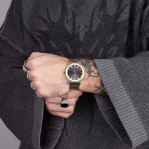 Мужские кварцевые часы Slazenger SL.09.2375.1.02 – идеальное сочетание классического дизайна и современных технологий, созданное для уверенных в себе мужчин. Корпус выполнен из суперметалла серебристого цвета, диаметром 41 мм и толщиной 8 мм, подчёркивает надежность модели и делает их идеальным аксессуаром для любой ситуации – будь то деловая встреча или повседневные выходы. Циферблат надёжно защищён минеральным стекломМинеральное стеклоМинеральное стекло представляет собой искусственно выращенный минерал кварца. Такое стекло отличается особой устойчивостью к повреждениям и царапинам. Уступает по некоторым качествам сапфировому стеклу., которое устойчиво к механическим повреждениям и сохраняет кристальную прозрачность. Неподвижный безельБезельВнешний ободок, закрепляющий стекло. В спортивных часах так называется поворотное кольцо с делениями на циферблате, выполняет роль таймера – замеряет отрезки времени на шкале. Неподвижный безель – элемент декора. Однонаправленно вращающийся безель на дайверских часах позволяет фиксировать моменты погружения и выныривания на поверхность. с IP-покрытиемIP-покрытиеМетод ионного напыления. Демонстрирует повышенную устойчивость к истиранию, окислению и химическим веществам. Под воздействием высокого давления и температуры около 1500°C молекулы металла надёжно соединяются с частицами корпуса часов. золотистого цвета. Стальной браслет с частичным IP-покрытиемIP-покрытиеМетод ионного напыления. Демонстрирует повышенную устойчивость к истиранию, окислению и химическим веществам. Под воздействием высокого давления и температуры около 1500°C молекулы металла надёжно соединяются с частицами корпуса часов. удобно облегает запястье и фиксируется с помощью раскладной застёжкиРаскладная застёжкаТакой тип застёжки используется только на браслетах из металла. Она никогда не раскрывается полностью, происходит разделение на 2 и более частей. Раскладывающая застёжка снизит вероятность потери часов к минимуму., обеспечивая надёжность и комфорт в повседневном ношении. Эти часы станут не просто аксессуаром, а надежным спутником в любой ситуации, подчеркивая ваш безупречный вкус и деловой стиль. Водозащита 50 метров позволит защитить корпус от случайных брызг или капель дождя.