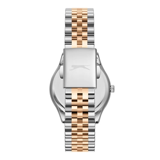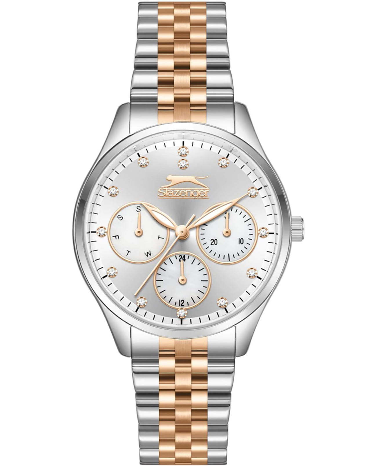 Женские кварцевые часы Slazenger — это элегантный и функциональный аксессуар. Корпус диаметром 34 мм и толщиной 11 мм выполнен из суперметалла. Циферблат серебристого цвета оформлен индексами и стрелками, украшен фианитами. Циферблат защищён минеральным стекломМинеральное стеклоМинеральное стекло представляет собой искусственно выращенный минерал кварца. Такое стекло отличается особой устойчивостью к повреждениям и царапинам. Уступает по некоторым качествам сапфировому стеклу.. Механизм — кварцевый. Часы оснащены индикацией дня недели, даты и 12/24-часового формата времени. Часы оснащены браслетом из суперметалла с IP-покрытиемIP-покрытиеМетод ионного напыления. Демонстрирует повышенную устойчивость к истиранию, окислению и химическим веществам. Под воздействием высокого давления и температуры около 1500°C молекулы металла надёжно соединяются с частицами корпуса часов. и раскладной застёжкойРаскладная застёжкаТакой тип застёжки используется только на браслетах из металла. Она никогда не раскрывается полностью, происходит разделение на 2 и более частей. Раскладывающая застёжка снизит вероятность потери часов к минимуму.. Водонепроницаемость 50 м позволяет использовать часы в повседневных условиях. Гарантия — 12 месяцев. Идеальный выбор для тех, кто ценит стиль, функциональность и качество.