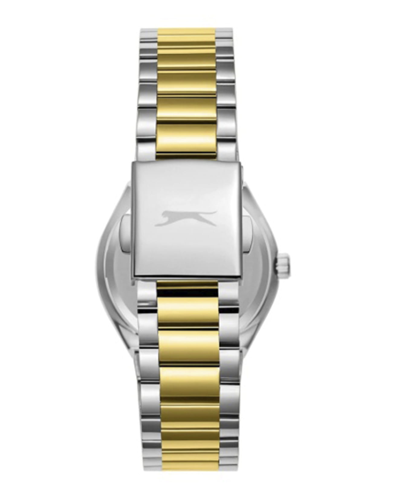Женские кварцевые часы Slazenger — это выразительный и функциональный аксессуар. Корпус диаметром 34 мм и толщиной 9,5 мм выполнен из суперметалла. БезельБезельВнешний ободок, закрепляющий стекло. В спортивных часах так называется поворотное кольцо с делениями на циферблате, выполняет роль таймера – замеряет отрезки времени на шкале. Неподвижный безель – элемент декора. Однонаправленно вращающийся безель на дайверских часах позволяет фиксировать моменты погружения и выныривания на поверхность. из суперметалла с IP-покрытиемIP-покрытиеМетод ионного напыления. Демонстрирует повышенную устойчивость к истиранию, окислению и химическим веществам. Под воздействием высокого давления и температуры около 1500°C молекулы металла надёжно соединяются с частицами корпуса часов... Циферблат серебристого цвета оформлен индексами и стрелками. Циферблат защищён минеральным стекломМинеральное стеклоМинеральное стекло представляет собой искусственно выращенный минерал кварца. Такое стекло отличается особой устойчивостью к повреждениям и царапинам. Уступает по некоторым качествам сапфировому стеклу.. Механизм — кварцевый калибр VX3HE11. Часы оснащены индикацией дня недели, даты и индикатором день/ночь, отображающим солнце или луну в зависимости от времени суток. Часы оснащены браслетом из суперметалла с IP-покрытиемIP-покрытиеМетод ионного напыления. Демонстрирует повышенную устойчивость к истиранию, окислению и химическим веществам. Под воздействием высокого давления и температуры около 1500°C молекулы металла надёжно соединяются с частицами корпуса часов. и раскладной застёжкойРаскладная застёжкаТакой тип застёжки используется только на браслетах из металла. Она никогда не раскрывается полностью, происходит разделение на 2 и более частей. Раскладывающая застёжка снизит вероятность потери часов к минимуму.. Водонепроницаемость 50 м позволяет использовать часы в повседневных условиях. Гарантия — 12 месяцев. Идеальный выбор для тех, кто ценит стиль, функциональность и качество.
