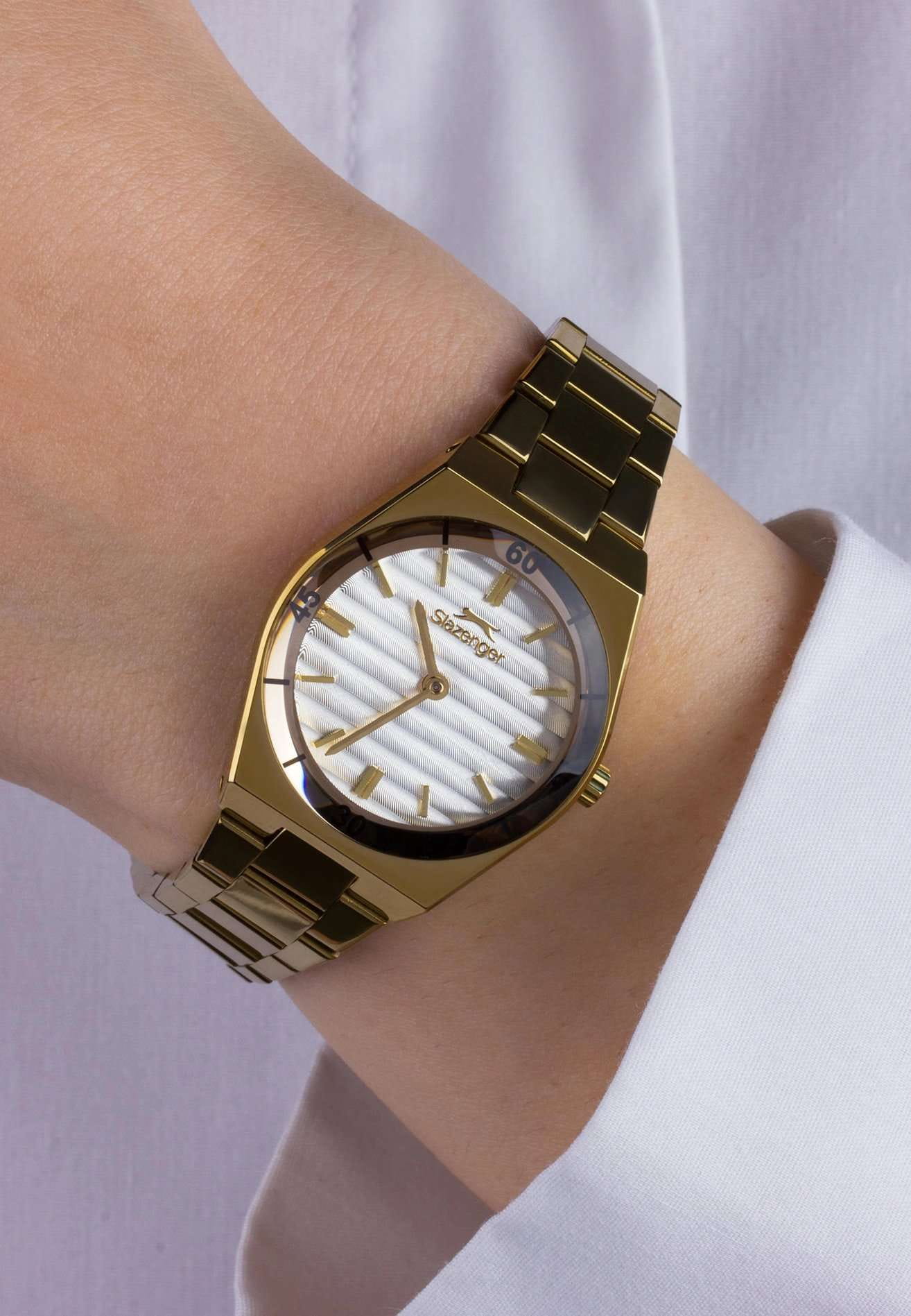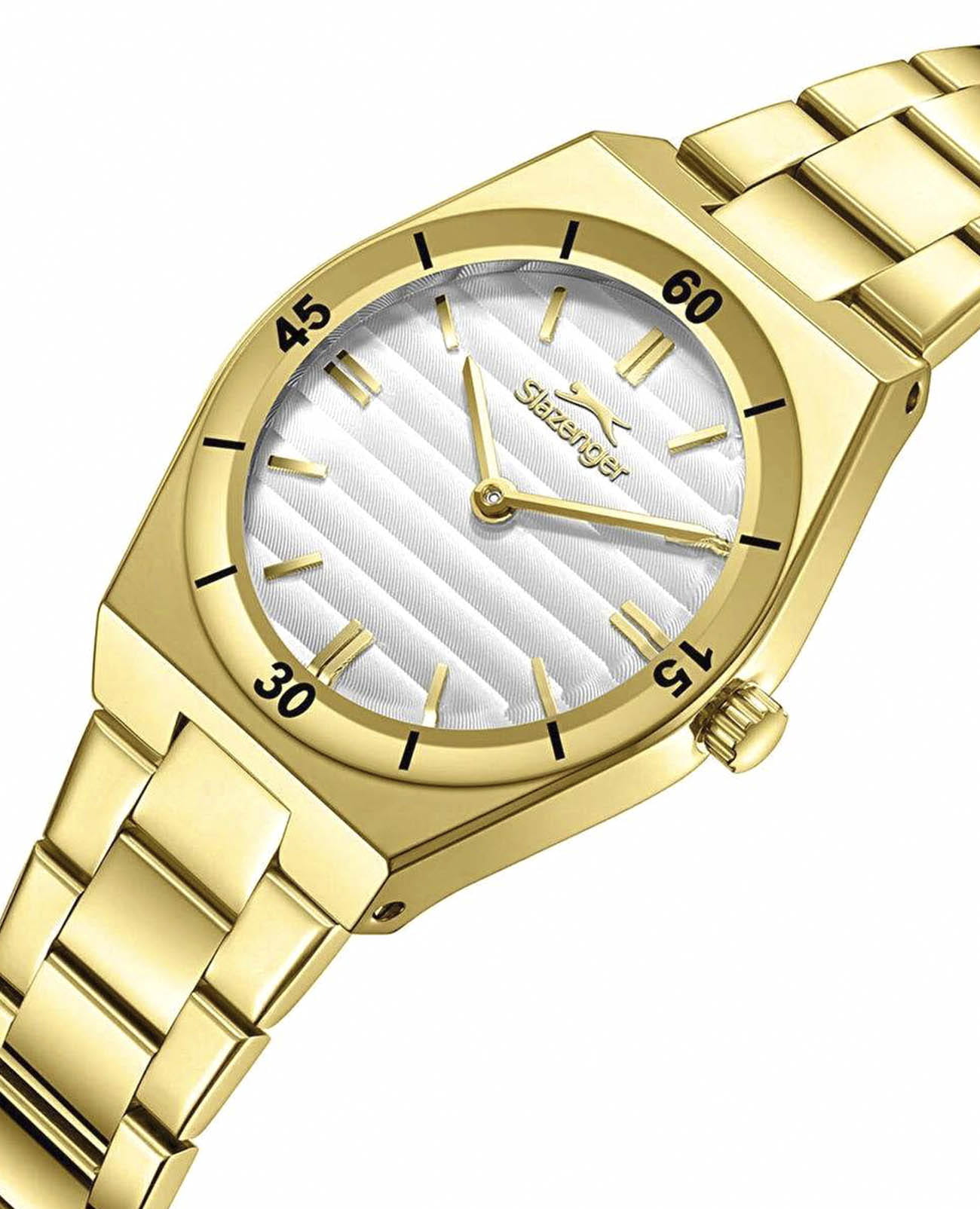 Женские кварцевые часы Slazenger — это элегантный аксессуар. Корпус диаметром 28 мм и толщиной 7,5 мм выполнен из суперметалла с IP-покрытиемIP-покрытиеМетод ионного напыления. Демонстрирует повышенную устойчивость к истиранию, окислению и химическим веществам. Под воздействием высокого давления и температуры около 1500°C молекулы металла надёжно соединяются с частицами корпуса часов.. Циферблат серебристого цвета оформлен индексами и стрелками. Циферблат защищён минеральным стекломМинеральное стеклоМинеральное стекло представляет собой искусственно выращенный минерал кварца. Такое стекло отличается особой устойчивостью к повреждениям и царапинам. Уступает по некоторым качествам сапфировому стеклу.. Механизм — кварцевый. Часы оснащены браслетом из суперметалла с IP-покрытиемIP-покрытиеМетод ионного напыления. Демонстрирует повышенную устойчивость к истиранию, окислению и химическим веществам. Под воздействием высокого давления и температуры около 1500°C молекулы металла надёжно соединяются с частицами корпуса часов. на раскладной застёжкеРаскладная застёжкаТакой тип застёжки используется только на браслетах из металла. Она никогда не раскрывается полностью, происходит разделение на 2 и более частей. Раскладывающая застёжка снизит вероятность потери часов к минимуму.. Водонепроницаемость 50 м позволяет использовать часы в повседневных условиях. Гарантия — 12 месяцев. Идеальный выбор для тех, кто ценит стиль и качество.