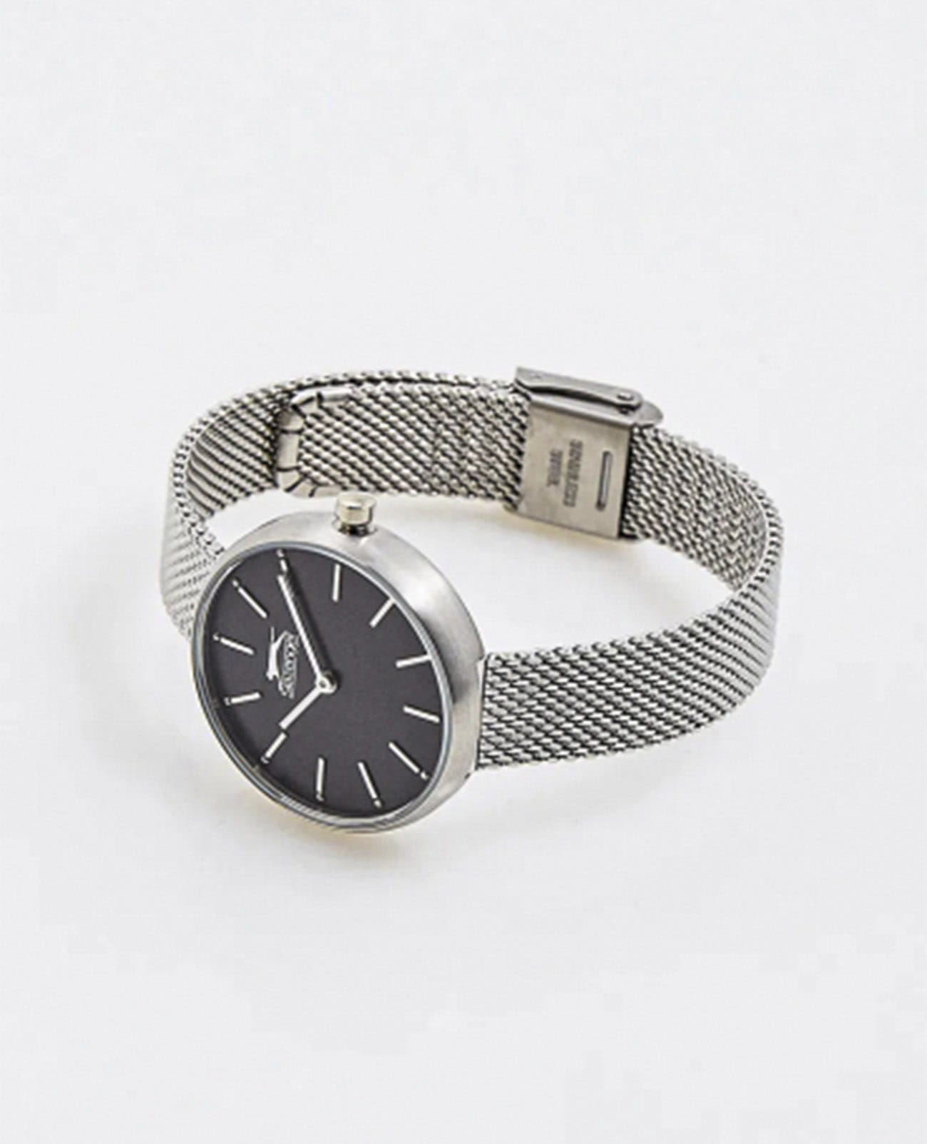 Женские кварцевые часы Slazenger — стильный аксессуар с тонким корпусом и изящным браслетом миланского плетения, идеально сочетающий элегантность и современный дизайн. Корпус диаметром 30 мм и толщиной 8 мм выполнен из суперметалла. Циферблат чёрного цвета оформлен индексами и стрелками. Циферблат защищён минеральным стекломМинеральное стеклоМинеральное стекло представляет собой искусственно выращенный минерал кварца. Такое стекло отличается особой устойчивостью к повреждениям и царапинам. Уступает по некоторым качествам сапфировому стеклу.. Механизм — кварцевый. Часы оснащены браслетом из суперметалла миланского плетения с раскладной застёжкойРаскладная застёжкаТакой тип застёжки используется только на браслетах из металла. Она никогда не раскрывается полностью, происходит разделение на 2 и более частей. Раскладывающая застёжка снизит вероятность потери часов к минимуму.. Водонепроницаемость 30 м позволяет использовать часы в повседневных условиях. Надёжный выбор для тех, кто ценит лаконичность, качество и утончённый стиль.