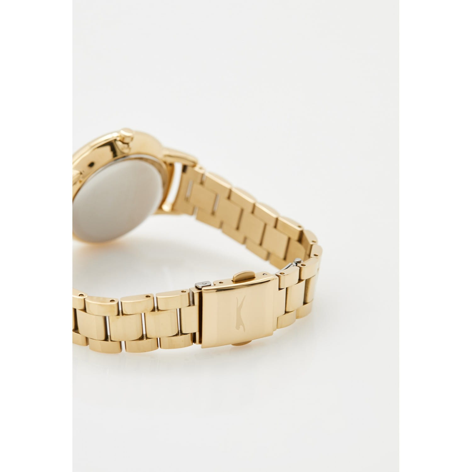 Женские кварцевые часы Slazenger — это элегантный аксессуар. Корпус диаметром 36 мм и толщиной 9 мм выполнен из суперметалла с IP-покрытиемIP-покрытиеМетод ионного напыления. Демонстрирует повышенную устойчивость к истиранию, окислению и химическим веществам. Под воздействием высокого давления и температуры около 1500°C молекулы металла надёжно соединяются с частицами корпуса часов.. Циферблат серебристого цвета оформлен индексами и стрелками. Циферблат защищён минеральным стекломМинеральное стеклоМинеральное стекло представляет собой искусственно выращенный минерал кварца. Такое стекло отличается особой устойчивостью к повреждениям и царапинам. Уступает по некоторым качествам сапфировому стеклу.. Механизм — кварцевый калибр Miyota 2035. Часы оснащены браслетом из суперметалла на раскладной застёжкеРаскладная застёжкаТакой тип застёжки используется только на браслетах из металла. Она никогда не раскрывается полностью, происходит разделение на 2 и более частей. Раскладывающая застёжка снизит вероятность потери часов к минимуму.. Водонепроницаемость 30 м позволяет использовать часы в повседневных условиях. Идеальный выбор для тех, кто ценит стиль и качество.