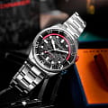 Мужские итальянские часы Spinnaker Bradner SP-5111-11 из лимитированной серии (600 экземпляров). Механический механизм с высокой точностью. Циферблат с люминесцентным покрытиемЛюминесцентное покрытиеПозволяет считывать показания времени в темноте. Производители наносят на стрелки, часовые индексы, безель или поверхность циферблата светонакопительный состав, дающий холодное свечение. стрелок, меток и поворотный безельБезельВнешний ободок, закрепляющий стекло. В спортивных часах так называется поворотное кольцо с делениями на циферблате, выполняет роль таймера – замеряет отрезки времени на шкале. Неподвижный безель – элемент декора. Однонаправленно вращающийся безель на дайверских часах позволяет фиксировать моменты погружения и выныривания на поверхность. дополнен сапфировым стекломСапфировое стеклоПрочный и надёжный материал из кристалла сапфира синтетического происхождения, характеризующийся особой твёрдостью и устойчивостью к царапинам и повреждениям. с антибликовым покрытиемАнтибликовое покрытиеСлой оксида металла в 0,13-0,3 микрон, благодаря которому стекло часов не бликует и не отражает свет. Антибликовое покрытие уменьшает отражение света в 10 раз, обеспечивая отличную читаемость показателей циферблата., устойчивым к появлению царапин и обладающее высокой прозрачностью. Класс водозащиты: 300 метров, позволит плавать, нырять и заниматься другими водными видами спорта. Корпус часов изготовлен из стали. Браслет выполнен из нержавеющей стали.Ширина браслета 20 мм.