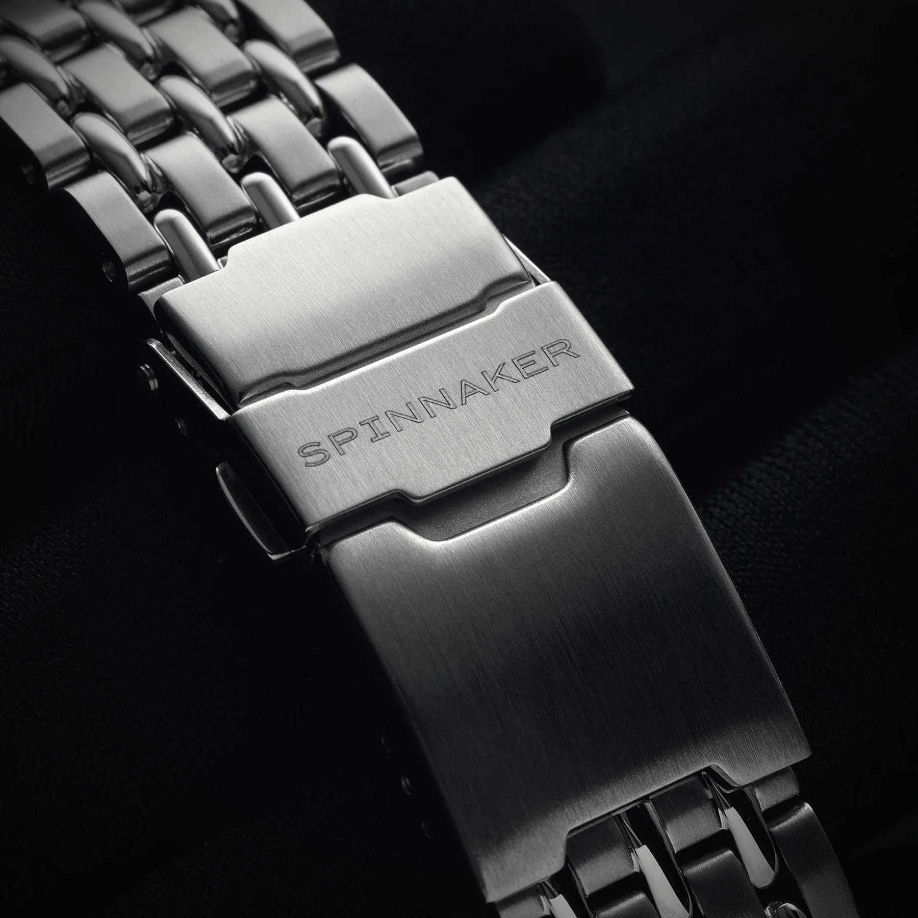 Мужские итальянские часы Spinnaker Hull SP-5114-66-HH из лимитированной серии (400 экземпляров). Механические часы с автоподзаводом. Циферблат с люминесцентным покрытиемЛюминесцентное покрытиеПозволяет считывать показания времени в темноте. Производители наносят на стрелки, часовые индексы, безель или поверхность циферблата светонакопительный состав, дающий холодное свечение. стрелок, меток дополнен сапфировым стекломСапфировое стеклоПрочный и надёжный материал из кристалла сапфира синтетического происхождения, характеризующийся особой твёрдостью и устойчивостью к царапинам и повреждениям. с антибликовым покрытиемАнтибликовое покрытиеСлой оксида металла в 0,13-0,3 микрон, благодаря которому стекло часов не бликует и не отражает свет. Антибликовое покрытие уменьшает отражение света в 10 раз, обеспечивая отличную читаемость показателей циферблата., устойчивым к появлению царапин и обладающее высокой прозрачностью. Класс водозащиты: 300 метров, позволит плавать, нырять и заниматься другими водными видами спорта. Корпус часов изготовлен из нержавеющей стали с поворотным безелемБезельВнешний ободок, закрепляющий стекло. В спортивных часах так называется поворотное кольцо с делениями на циферблате, выполняет роль таймера – замеряет отрезки времени на шкале. Неподвижный безель – элемент декора. Однонаправленно вращающийся безель на дайверских часах позволяет фиксировать моменты погружения и выныривания на поверхность. . Браслет выполнен из нержавеющей стали на раскладной застёжкеРаскладная застёжкаТакой тип застёжки используется только на браслетах из металла. Она никогда не раскрывается полностью, происходит разделение на 2 и более частей. Раскладывающая застёжка снизит вероятность потери часов к минимуму.. Ширина браслета 20 мм. В комплекте дополнительный силиконовый ремешок.