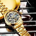 Мужские наручные часы Stührling Original 371B.03 из коллекции Luciano Automatic Skeleton сочетают в себе классический дизайн и современные технологии . Модель оснащена механическим механизмом с автоподзаводом, что гарантирует точность хода без необходимости ручного завода . Корпус часов диаметром 47 мм изготовлен из нержавеющей стали с PVD-покрытиемPVDУльтратонкое покрытие наносится в технике вакуумного напыления, сочетает в себе нитрид титана особой прочности со слоем золота или оксида хрома. Несёт в себе декоративную или защитную функцию. под золото, что подчеркивает элегантность модели . Защиту циферблата обеспечивает прочное стекло KrysternaKrysternaKrysterna — инновационное стекло для наручных часов. Благодаря уникальной структуре, Krysterna объединяет ключевые преимущества двух материалов: твердость сапфира, защищающую от царапин, и гибкость минерального стекла, обеспечивающую устойчивость к деформациям. Такая комбинация делает его идеальным решением для часов, подверженных экстремальным нагрузкам, сохраняя при этом оптическую прозрачность., известное своей устойчивостью к царапинам и механическим повреждениям . Циферблат выполнен в стиле , что позволяет наблюдать за работой внутреннего механизма и демонстрирует сложность инженерного решения . Такой дизайн делает модель не только функциональной, но и стильной, привлекая внимание ценителей сложных технических решений. Браслет из того же материала на раскладной застёжкеРаскладная застёжкаТакой тип застёжки используется только на браслетах из металла. Она никогда не раскрывается полностью, происходит разделение на 2 и более частей. Раскладывающая застёжка снизит вероятность потери часов к минимуму.. Водонепроницаемость модели достигает 5 атмосфер (50 метров), что позволяет использовать их в повседневных условиях, включая контакт с водой, например, при мытье рук или дожде . Заводная головка с системой завинчивания обеспечивает дополнительную защиту механизма от внешних воздействий.