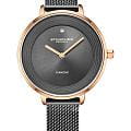 Stuhrling 3946.4 — элегантные женские часы, объединяющие строгую классику и современную функциональность. Корпус из нержавеющей стали с PVD-покрытиемPVDУльтратонкое покрытие наносится в технике вакуумного напыления, сочетает в себе нитрид титана особой прочности со слоем золота или оксида хрома. Несёт в себе декоративную или защитную функцию. создают ощущение монолитной надёжности, а глубокий циферблат украшенный кристаллом придаёт модели выразительность и характер. Стальной браслет миланского плетения с PVD-покрытиемPVDУльтратонкое покрытие наносится в технике вакуумного напыления, сочетает в себе нитрид титана особой прочности со слоем золота или оксида хрома. Несёт в себе декоративную или защитную функцию. на раскладном замкеРаскладной замокДанный вариант застежки используется только на часах с металлическим браслетом. Отличительная особенность такого крепления в том, что длина браслета становится универсальной и вы можете самостоятельно отрегулировать нужный вам размер – застежка просто двигается по браслету часов.. Прочное стекло KrysternaKrysternaKrysterna — инновационное стекло для наручных часов. Благодаря уникальной структуре, Krysterna объединяет ключевые преимущества двух материалов: твердость сапфира, защищающую от царапин, и гибкость минерального стекла, обеспечивающую устойчивость к деформациям. Такая комбинация делает его идеальным решением для часов, подверженных экстремальным нагрузкам, сохраняя при этом оптическую прозрачность. защищает циферблат от царапин, а надёжный кварцевый механизм гарантирует стабильную точность. Stuhrling — выбор уверенной девушки, ценящей сочетание функциональности, лаконичного дизайна и безупречной отделки.