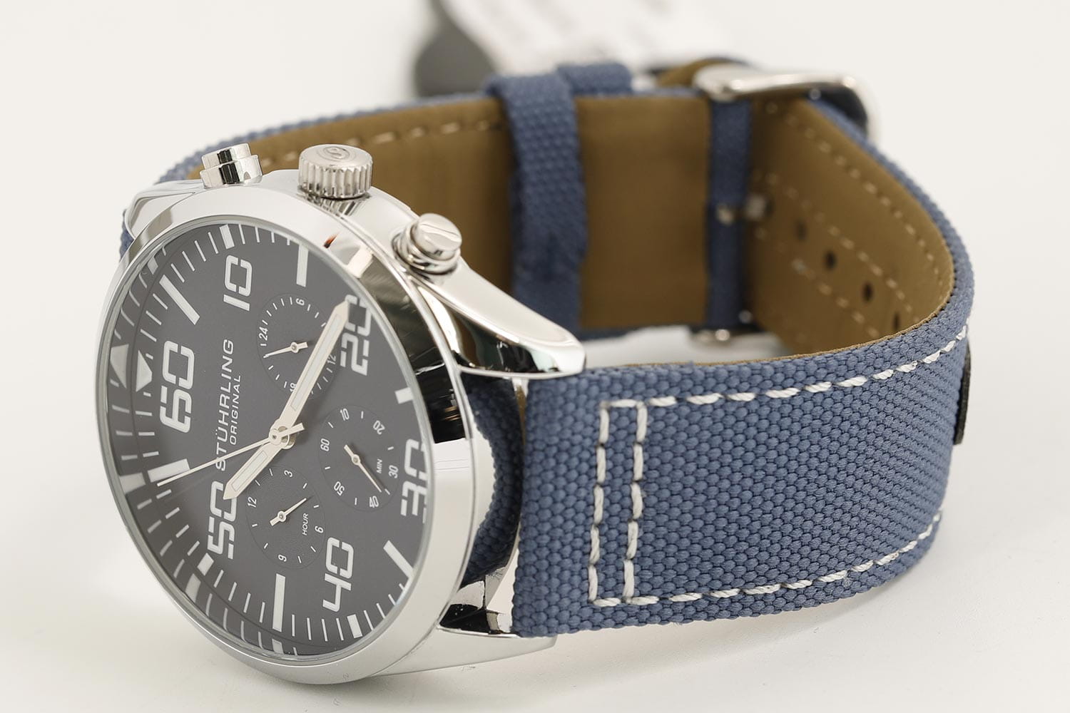 Stuhrling 4001.4 — стильные мужские часы в авиационном духе, где функциональность сочетается с современным дизайном. Корпус из нержавеющей стали подчёркивает прочность и надёжность модели, а глубокий циферблат с крупными арабскими цифрами и тремя счётчиками хронографаХронографФункция позволяет измерять отрезки времени с особой точностью: часы, минуты, секунды. Верным признаком хронографа является наличие на циферблате 3 дополнительных окошек-счётчиков. придаёт динамичный характер. Контрастные стрелки и метки с люминесцентным покрытиемЛюминесцентное покрытиеПозволяет считывать показания времени в темноте. Производители наносят на стрелки, часовые индексы, безель или поверхность циферблата светонакопительный состав, дающий холодное свечение. обеспечивают превосходную читаемость даже в темноте. Прочное стекло KrysternaKrysternaKrysterna — инновационное стекло для наручных часов. Благодаря уникальной структуре, Krysterna объединяет ключевые преимущества двух материалов: твердость сапфира, защищающую от царапин, и гибкость минерального стекла, обеспечивающую устойчивость к деформациям. Такая комбинация делает его идеальным решением для часов, подверженных экстремальным нагрузкам, сохраняя при этом оптическую прозрачность. устойчиво к царапинам и сохраняет идеальную прозрачность. Завершает образ тканевый ремень, добавляющий часам лёгкости и спортивного обаяния. Stuhrling — воплощение мужского стиля и уверенности в каждой детали.