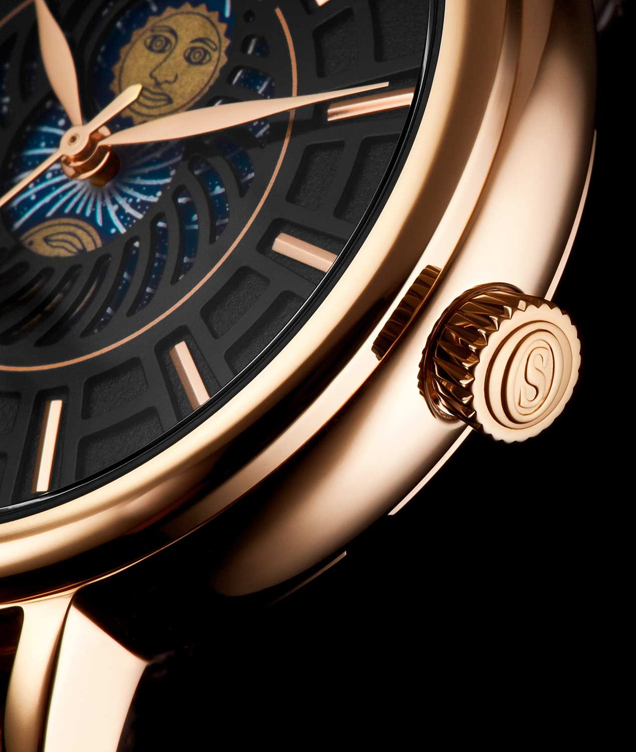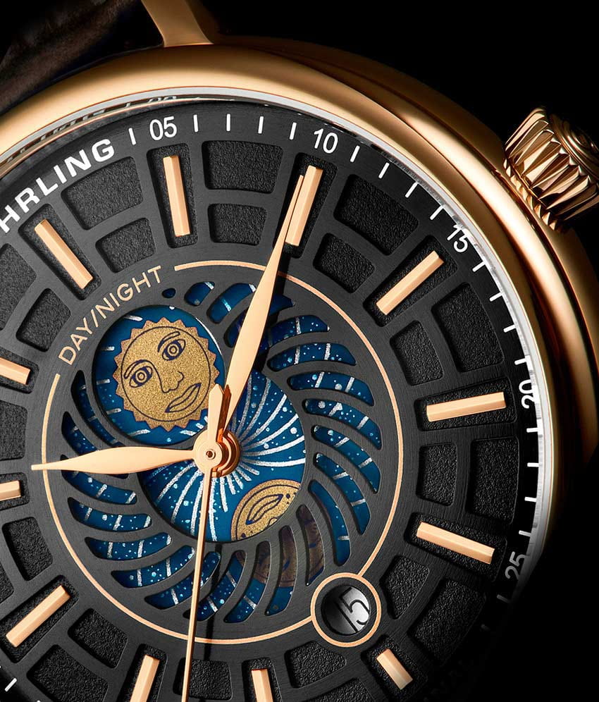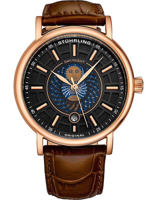 Stuhrling 899.05 — выразительные мужские часы с уникальным дизайнерским решением. Глубокий циферблат с геометрическим узором придаёт модели эффектный и современный вид. Корпус из нержавеющей стали с PVD-покрытиемPVDУльтратонкое покрытие наносится в технике вакуумного напыления, сочетает в себе нитрид титана особой прочности со слоем золота или оксида хрома. Несёт в себе декоративную или защитную функцию. отличается аккуратной полировкой и плавными формами, подчёркивающими элегантность классического стиля. Прочное стекло KrysternaKrysternaKrysterna — инновационное стекло для наручных часов. Благодаря уникальной структуре, Krysterna объединяет ключевые преимущества двух материалов: твердость сапфира, защищающую от царапин, и гибкость минерального стекла, обеспечивающую устойчивость к деформациям. Такая комбинация делает его идеальным решением для часов, подверженных экстремальным нагрузкам, сохраняя при этом оптическую прозрачность. защищает поверхность от царапин, сохраняя прозрачность и глубину цвета. Ремень из натуральной кожи на стандартной застежке, обеспечивает комфорт и надёжность при ежедневном ношении. Stuhrling — это гармония механической точности и выразительного дизайна, созданная для мужчин, ценящих стиль и совершенство деталей.