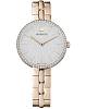 Корпус диаметром 32 мм выполнен из нержавеющей стали с шампань-золотистым PVD-покрытиемPVDУльтратонкое покрытие наносится в технике вакуумного напыления, сочетает в себе нитрид титана особой прочности со слоем золота или оксида хрома. Несёт в себе декоративную или защитную функцию., что обеспечивает долговечность и утончённый внешний вид. БезельБезельВнешний ободок, закрепляющий стекло. В спортивных часах так называется поворотное кольцо с делениями на циферблате, выполняет роль таймера – замеряет отрезки времени на шкале. Неподвижный безель – элемент декора. Однонаправленно вращающийся безель на дайверских часах позволяет фиксировать моменты погружения и выныривания на поверхность. украшен кристаллами Swarovski, добавляющими изысканный блеск. Минеральное стеклоМинеральное стеклоМинеральное стекло представляет собой искусственно выращенный минерал кварца. Такое стекло отличается особой устойчивостью к повреждениям и царапинам. Уступает по некоторым качествам сапфировому стеклу. защищает циферблат от царапин и повреждений.