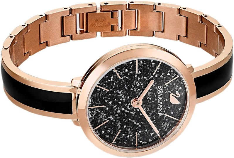 Часы Swarovski 5580530 представляют собой изысканное сочетание стиля и функциональности, идеально подходящее для ценителей элегантных аксессуаров. Эти швейцарские женские кварцевые часы заключены в корпус с безелемБезельВнешний ободок, закрепляющий стекло. В спортивных часах так называется поворотное кольцо с делениями на циферблате, выполняет роль таймера – замеряет отрезки времени на шкале. Неподвижный безель – элемент декора. Однонаправленно вращающийся безель на дайверских часах позволяет фиксировать моменты погружения и выныривания на поверхность. из стали с золотистым PVDPVDУльтратонкое покрытие наносится в технике вакуумного напыления, сочетает в себе нитрид титана особой прочности со слоем золота или оксида хрома. Несёт в себе декоративную или защитную функцию. покрытием, который дополнен черным циферблатом. Особое внимание привлекает инкрустация кристаллами Swarovski, украшающими циферблат, создавая эффектный блеск и подчеркивая роскошь изделия. Минеральное стеклоМинеральное стеклоМинеральное стекло представляет собой искусственно выращенный минерал кварца. Такое стекло отличается особой устойчивостью к повреждениям и царапинам. Уступает по некоторым качествам сапфировому стеклу. надежно защищает циферблат, а водозащита 50 WR позволяет не беспокоиться о контакте с водой в повседневной жизни. Стальной браслет с PVDPVDУльтратонкое покрытие наносится в технике вакуумного напыления, сочетает в себе нитрид титана особой прочности со слоем золота или оксида хрома. Несёт в себе декоративную или защитную функцию. покрытием и ювелирной застежкой, частично покрытый эмалью черного цвета, обеспечивает комфортное ношение и стильный внешний вид. Эти часы не просто аксессуар, а настоящее произведение искусства, способное стать ярким акцентом любого образа.