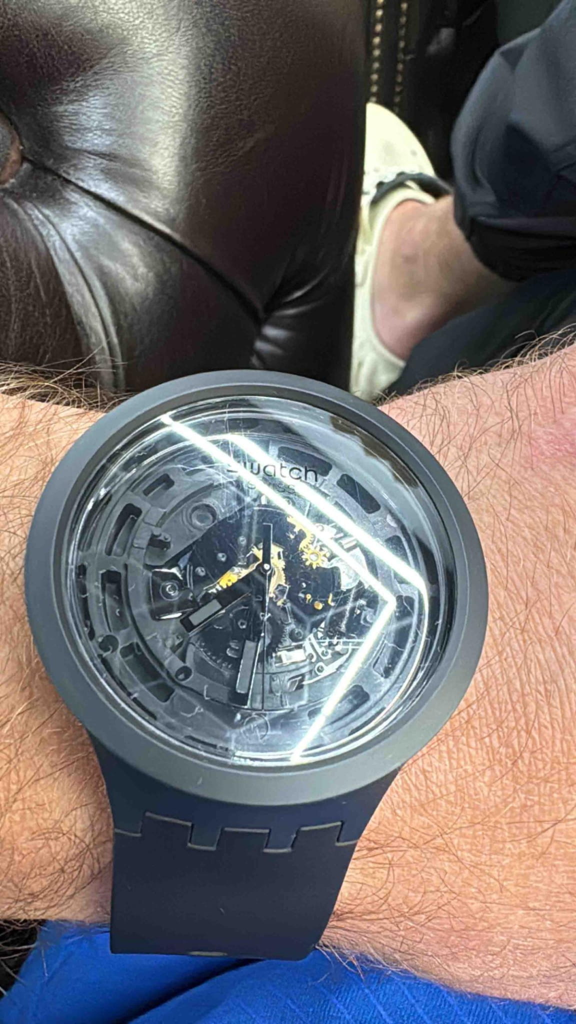 Часы Swatch SB03B100 — это стильный и современный аксессуар для тех, кто ценит лёгкость и комфорт. Часы идеально подойдут как для мужчин, так и для женщин. Прекрасный образец часов, выполненных полностью из материалов биологического происхождения: открытый механизм и биокерамикаБиокерамикаБиокерамика — это материал, который на две трети состоит из керамики, на одну треть — из биопластика. Он сочетает в себе лучшие качества обоих материалов и обладает прочностью и шелковистой на ощупь текстурой., которая создает ощущение шелковистости. Впечатляющий дизайн черного цвета — инновация в своем лучшем проявлении. На часовую, минутную стрелки нанесено люминесцентное покрытиеЛюминесцентное покрытиеПозволяет считывать показания времени в темноте. Производители наносят на стрелки, часовые индексы, безель или поверхность циферблата светонакопительный состав, дающий холодное свечение., которое светится в темноте, создавая необычное изображение. Водозащита 30 метров делает часы практичными для повседневного использования. Эти часы подойдут для повседневного ношения и станут ярким акцентом в вашем наряде.