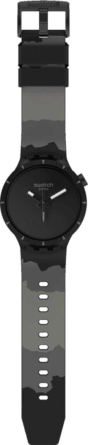Часы Swatch SB03B110 — это стильный и современный аксессуар для тех, кто ценит лёгкость и комфорт. Часы идеально подойдут как для мужчин, так и для женщин. Центральный элемент этой модели часов — большой корпус со стеклом из био-материала, украшенный 3D-циферблатом с принтами на индексах. Корпус из биокерамикиБиокерамикаБиокерамика — это материал, который на две трети состоит из керамики, на одну треть — из биопластика. Он сочетает в себе лучшие качества обоих материалов и обладает прочностью и шелковистой на ощупь текстурой., а ремешок — из однотонного матово-черного силикона с темно-серым принтом. Черный циферблат подчеркивает белые акценты на темных стрелках. Секундная стрелка, прообразом которой стала стрелка компаса, усиливает дух приключений. На часовую, минутную стрелки нанесено люминесцентное покрытиеЛюминесцентное покрытиеПозволяет считывать показания времени в темноте. Производители наносят на стрелки, часовые индексы, безель или поверхность циферблата светонакопительный состав, дающий холодное свечение., которое светится в темноте, создавая необычное изображение. Водозащита 30 метров делает часы практичными для повседневного использования. Эти часы подойдут для повседневного ношения и станут ярким акцентом в вашем наряде.