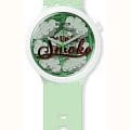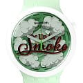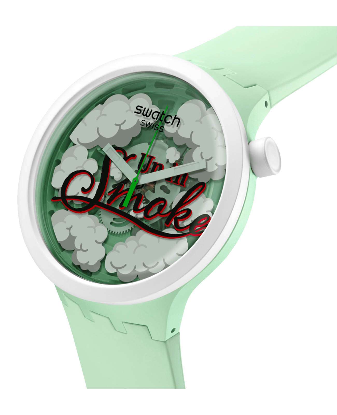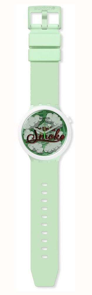 Часы Swatch SB03Z103 — это стильный и современный аксессуар для тех, кто ценит лёгкость и комфорт. Часы идеально подойдут как для мужчин, так и для женщин. Эти крупные зеленые часы со знаком "Up in Smoke" имеют корпус зеленого цвета и безельБезельВнешний ободок, закрепляющий стекло. В спортивных часах так называется поворотное кольцо с делениями на циферблате, выполняет роль таймера – замеряет отрезки времени на шкале. Неподвижный безель – элемент декора. Однонаправленно вращающийся безель на дайверских часах позволяет фиксировать моменты погружения и выныривания на поверхность. белого цвета из биокерамикиБиокерамикаБиокерамика — это материал, который на две трети состоит из керамики, на одну треть — из биопластика. Он сочетает в себе лучшие качества обоих материалов и обладает прочностью и шелковистой на ощупь текстурой., матовый силиконовый ремешок зеленого цвета. Водозащита 30 метров делает часы практичными для повседневного использования. Эти часы подойдут для повседневного ношения и станут ярким акцентом в вашем наряде.