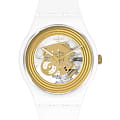 Часы Swatch SO29W107 — эффектный и удобный аксессуар. Современный взгляд на классику. Часы имеют белый корпус из биоматериала и золотистое оформление прозрачного циферблата, в котором можно наблюдать механизм часов. Ремешок из силикона на стандартной застёжке. Внутри часов установлен надежный кварцевый механизм, который обеспечивает точность хода. Эти часы водонепроницаемы до 30 метров, что позволяет не беспокоиться о случайных брызгах или дождевых каплях. Swatch SO29W107 — это идеальный выбор для тех, кто ценит сочетание стиля, комфорта и функциональности в одном аксессуаре.