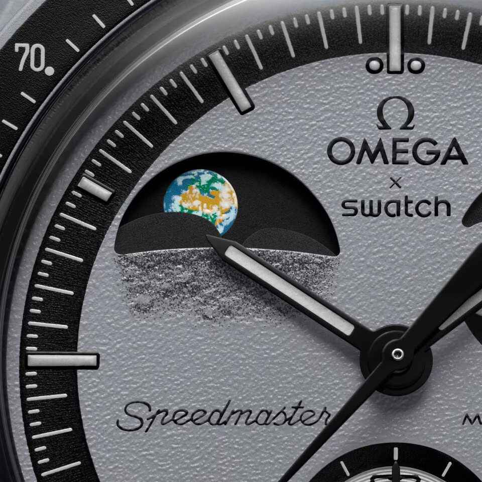 Швейцарские мужские часы Swatch x Omega Bioceramic Moonswatch Mission to EarthPhase SO33M700 с хронографом