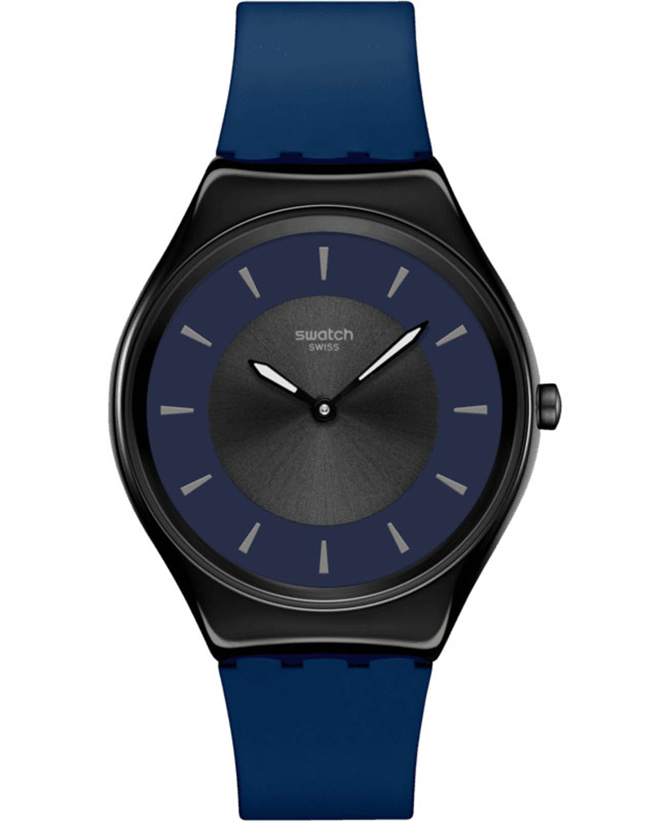 Часы Swatch SYXB108 — это стильный и современный аксессуар для тех, кто ценит лёгкость и комфорт. Часы идеально подойдут как для мужчин, так и для женщин. Эти ультратонкие часы имеют черный циферблат с радиальной полировкой, темно-синим внешним кольцевым принтом и серыми часовыми индексами, а также черные часовую и минутную стрелки с люминесцентным покрытиемЛюминесцентное покрытиеПозволяет считывать показания времени в темноте. Производители наносят на стрелки, часовые индексы, безель или поверхность циферблата светонакопительный состав, дающий холодное свечение.. Блестящий корпус и пряжка из нержавеющей стали с PVDPVDУльтратонкое покрытие наносится в технике вакуумного напыления, сочетает в себе нитрид титана особой прочности со слоем золота или оксида хрома. Несёт в себе декоративную или защитную функцию. покрытием прекрасно сочетаются с матовым темно-синим ремешком с тренчиком в тон и серой изнанкой. Водозащита 30 метров делает часы практичными для повседневного использования. Эти часы подойдут для повседневного ношения и станут ярким акцентом в вашем наряде.