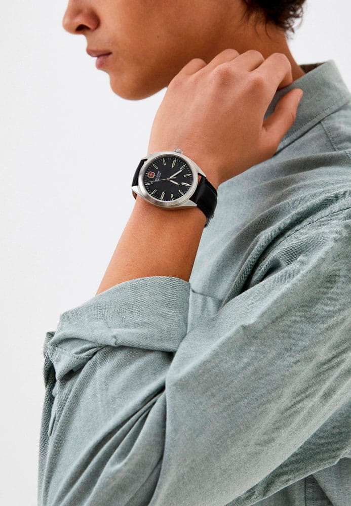 Мужские швейцарские часы от популярного бренда Swiss Military Hanowa представляют собой спортивные аксессуары, измеряющие время с абсолютной «армейской» точностью. Циферблат с люминесцентным покрытиемЛюминесцентное покрытиеПозволяет считывать показания времени в темноте. Производители наносят на стрелки, часовые индексы, безель или поверхность циферблата светонакопительный состав, дающий холодное свечение. стрелок, защищен сапфировым стекломСапфировое стеклоПрочный и надёжный материал из кристалла сапфира синтетического происхождения, характеризующийся особой твёрдостью и устойчивостью к царапинам и повреждениям., устойчивым к появлению царапин и обладающее высокой прозрачностью. Украшен швейцарским крестом, что является отражением высоких стандартов качества. Перед сборкой специалисты тщательно проверяют каждую деталь, для обнаружения мелких дефектов применяется электронное оборудование. Наручные часы станут превосходным дополнением как к деловому костюму, так и к повседневной водолазке благодаря сдержанной классической расцветке и отсутствию лишних деталей.