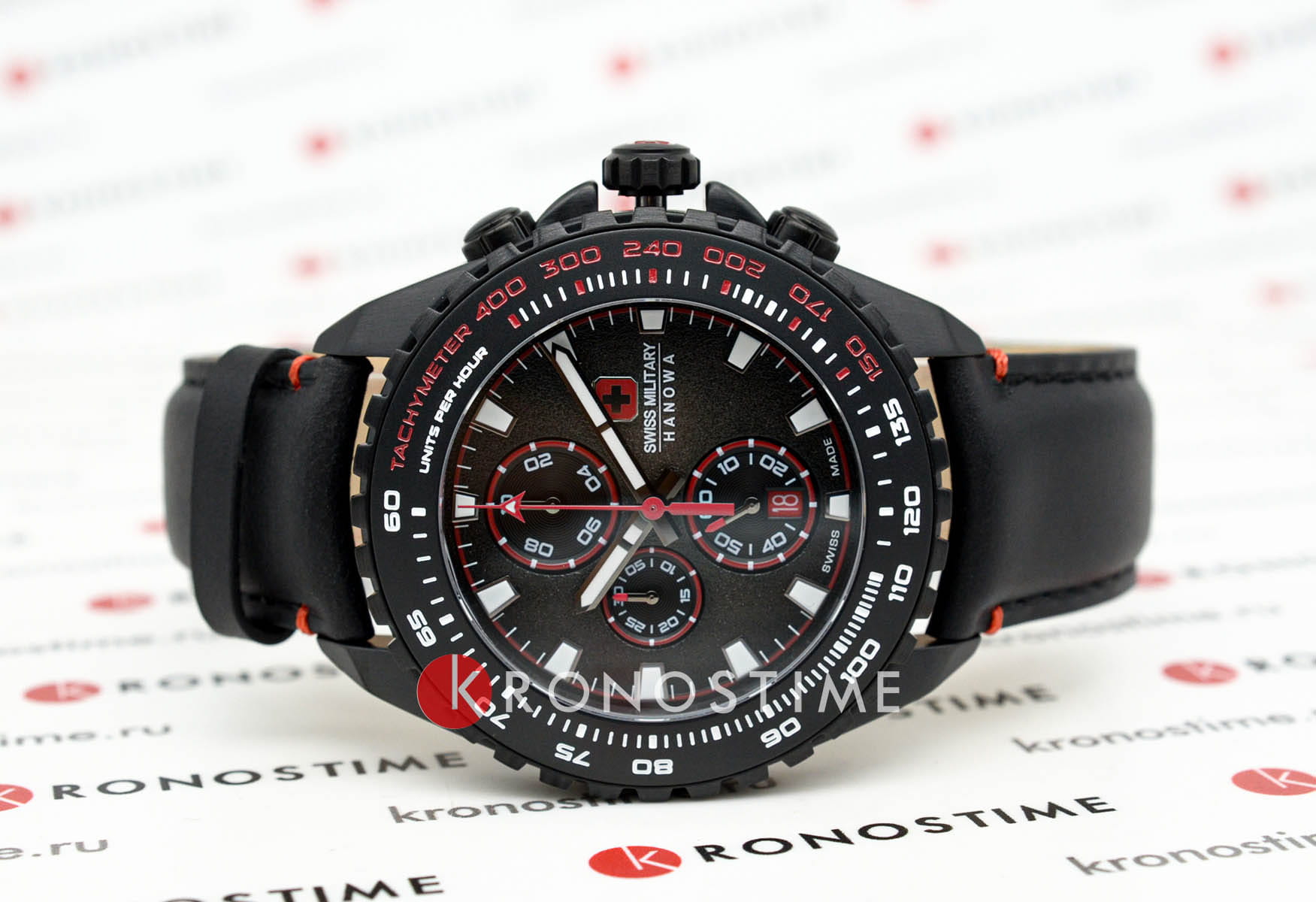 Мужские швейцарские часы- хронографХронографФункция позволяет измерять отрезки времени с особой точностью: часы, минуты, секунды. Верным признаком хронографа является наличие на циферблате 3 дополнительных окошек-счётчиков. с секундомеромСекундомерСекундоме́р — прибор, способный измерять интервалы времени с точностью до долей секунды. Swiss Military Hanowa Stone Marten SMWGC0001832, кварцевый механизм с высокой точностью. Сапфировое стеклоСапфировое стеклоПрочный и надёжный материал из кристалла сапфира синтетического происхождения, характеризующийся особой твёрдостью и устойчивостью к царапинам и повреждениям. устойчивое к появлению царапин, обладающее высокой прозрачностью. Корпус часов изготовлен из нержавеющей стали с IP-покрытиемIP-покрытиеМетод ионного напыления. Демонстрирует повышенную устойчивость к истиранию, окислению и химическим веществам. Под воздействием высокого давления и температуры около 1500°C молекулы металла надёжно соединяются с частицами корпуса часов.. Неподвижный безельБезельВнешний ободок, закрепляющий стекло. В спортивных часах так называется поворотное кольцо с делениями на циферблате, выполняет роль таймера – замеряет отрезки времени на шкале. Неподвижный безель – элемент декора. Однонаправленно вращающийся безель на дайверских часах позволяет фиксировать моменты погружения и выныривания на поверхность. из стали с IP-покрытиемIP-покрытиеМетод ионного напыления. Демонстрирует повышенную устойчивость к истиранию, окислению и химическим веществам. Под воздействием высокого давления и температуры около 1500°C молекулы металла надёжно соединяются с частицами корпуса часов. и шкалой тахиметрТахиметрРазмеченная шкала, располагается на ободке или безеле часов. Тахиметр позволяет рассчитать скорость на определённом участке пути, расстояние измеряется в километрах или милях.. Стрелки и метки с люминесцентным покрытиемЛюминесцентное покрытиеПозволяет считывать показания времени в темноте. Производители наносят на стрелки, часовые индексы, безель или поверхность циферблата светонакопительный состав, дающий холодное свечение.. Класс водозащиты: 100 метров, позволит плавать, нырять и заниматься другими водными видами спорта. Кожаный ремешок на стандартной застежке.