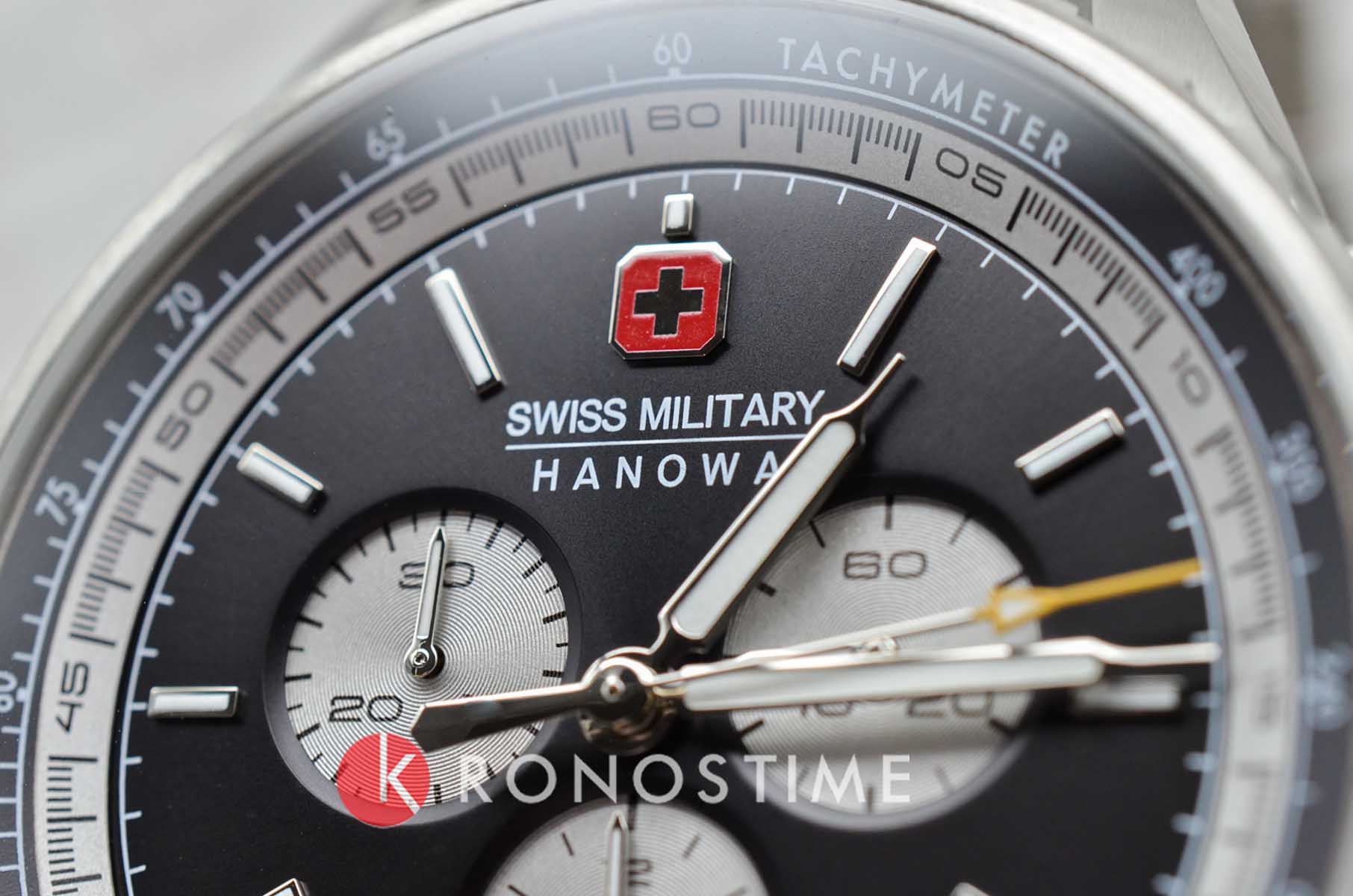 Мужские швейцарские часы Swiss Military Hanowa Afterburn Chrono SMWGI0000309 с хронографомХронографФункция позволяет измерять отрезки времени с особой точностью: часы, минуты, секунды. Верным признаком хронографа является наличие на циферблате 3 дополнительных окошек-счётчиков. и секундомеромСекундомерСекундоме́р — прибор, способный измерять интервалы времени с точностью до долей секунды.. Сапфировое стеклоСапфировое стеклоПрочный и надёжный материал из кристалла сапфира синтетического происхождения, характеризующийся особой твёрдостью и устойчивостью к царапинам и повреждениям. с антибликовым покрытием защищает циферблат от царапин и обеспечивает отличную читаемость при любом освещении. Корпус из нержавеющей стали диаметром 44 мм сбалансирован и элегантен. Браслет с раскладной застёжкойРаскладная застёжкаТакой тип застёжки используется только на браслетах из металла. Она никогда не раскрывается полностью, происходит разделение на 2 и более частей. Раскладывающая застёжка снизит вероятность потери часов к минимуму. идеально дополняют дизайн часов, обеспечивая комфортное ношение. Люминесцентное покрытиеЛюминесцентное покрытиеПозволяет считывать показания времени в темноте. Производители наносят на стрелки, часовые индексы, безель или поверхность циферблата светонакопительный состав, дающий холодное свечение. стрелок и меток позволит вам следить за временем даже в полной темноте. Стальной безельБезельВнешний ободок, закрепляющий стекло. В спортивных часах так называется поворотное кольцо с делениями на циферблате, выполняет роль таймера – замеряет отрезки времени на шкале. Неподвижный безель – элемент декора. Однонаправленно вращающийся безель на дайверских часах позволяет фиксировать моменты погружения и выныривания на поверхность. с PVD-покрытиемPVDУльтратонкое покрытие наносится в технике вакуумного напыления, сочетает в себе нитрид титана особой прочности со слоем золота или оксида хрома. Несёт в себе декоративную или защитную функцию.. Часы оснащены центральной секундной стрелкой и окошком даты в положении «6 часов», что делает их функциональными для повседневного использования. ТахиметрТахиметрРазмеченная шкала, располагается на ободке или безеле часов. Тахиметр позволяет рассчитать скорость на определённом участке пути, расстояние измеряется в километрах или милях. по внешнему краю. Водонепроницаемость до 100 метров. Идеальный выбор для тех, кто ценит качество и долговечность.