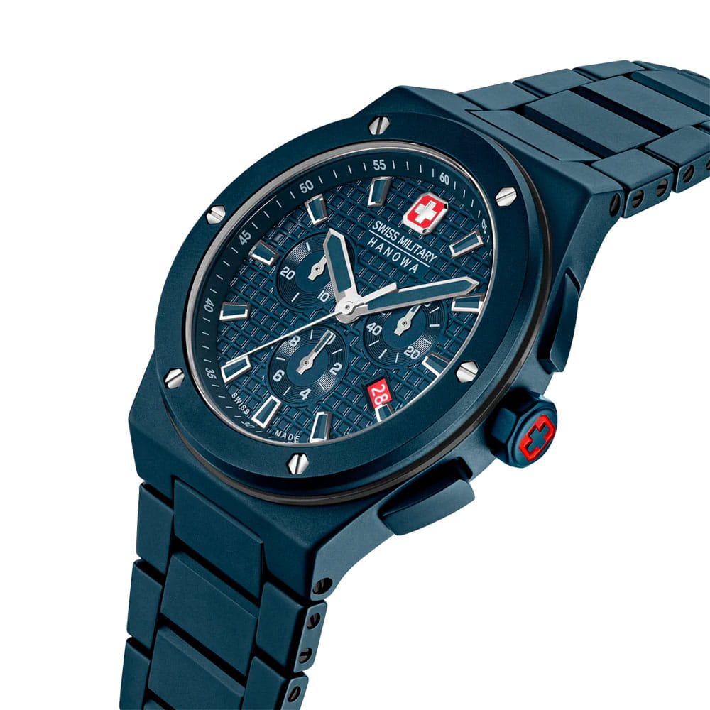 Мужские швейцарские часы-хронографХронографФункция позволяет измерять отрезки времени с особой точностью: часы, минуты, секунды. Верным признаком хронографа является наличие на циферблате 3 дополнительных окошек-счётчиков. Swiss Military Hanowa Thunderbolt Chrono SMWGI0002281, кварцевый механизм с высокой точностью. Сапфировое стеклоСапфировое стеклоПрочный и надёжный материал из кристалла сапфира синтетического происхождения, характеризующийся особой твёрдостью и устойчивостью к царапинам и повреждениям. устойчивое к появлению царапин, обладающее высокой прозрачностью. Класс водозащиты: 100 метров, позволит плавать, нырять и заниматься другими водными видами спорта. Корпус часов изготовлен из керамики. Керамический браслет с застежкой бабочкаЗастёжка "бабочка"Такой вид застёжки дополняется предохранителями, помогающими избежать случайного раскрытия браслета. Обладают изящным исполнением.