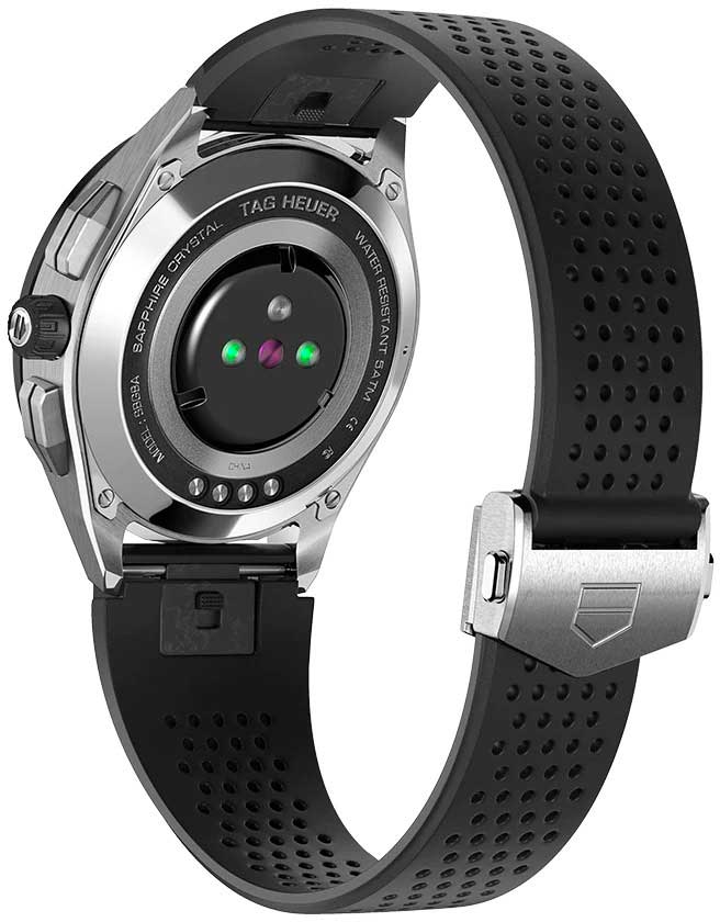 Новое поколение смарт-часов от TAG Heuer - это образец мастерства бренда, воплощающего в себе передовые технологии двадцать первого века. Эти часы – идеальный выбор для ценителей часового искусства и приверженцев активного образа жизни. Connected. Унисекс. Смарт-часы работают на базе четырехъядерного процессора Qualcomm® Snapdragon™ Wear 3100 и оснащены операционной системой Wear OS от Google. Совместимы с ОС Android 6.0+ (исключая версию Go) и iOS 10.0+. Встроенная система бесконтактной оплаты NFC (Google Pay). Микрофон. Голосовой помощник Google Assistant и Google Translate. Возможность установка приложений из Google Play. Возможность управления функциями телефона как через сенсорный дисплей, так и через функциональные кнопки и заводную головку. Подключение к интернету через Wi-Fi или с помощью интернета мобильного телефона. Синхронизация со смартфоном через Bluetooth. Поддержка спортивных онлайн-сообществ. Совместимость с приложением TAG Heuer Sports. Настраиваемые экраны: скелетонизированный циферблат мануфактурного механизма Heuer 02, цифровой механизм Carrera Heuer 01, анимация Orbital на основе уникальной нейросетевой модели, а также дисплей, вдохновленный фирменной спиралью баланса из углеродного композита на основе гексагональных нанотрубок. Настраиваемая подсветка (яркость/режим). Цветной сенсорный дисплей на органических светодиодах (OLED) размером 1,39'' и разрешением 454х454 пикселей (326 ppi). Второй часовой пояс. SPLIT-хронограф. Сервисы навигации GPS, GLONASS, BeiDou и QZSS. Пульсометр, компас, акселерометр, гироскоп, секундомер, таймер и будильник. Мониторинг количества израсходованных калорий. Вибро-оповещение. Перезаряжаемый аккумулятор 430мАч, которого хватает на сутки, включая часовую тренировку. Время полной подзарядки 1,5 часа. Керамический безель. Круглый корпус. Задняя крышка корпуса с винтовым креплением. Каучуковый ремешок с системой быстрой замены. В комплект входят магнитное зарядное устройство аккумулятора и специальный дорожный чехол.