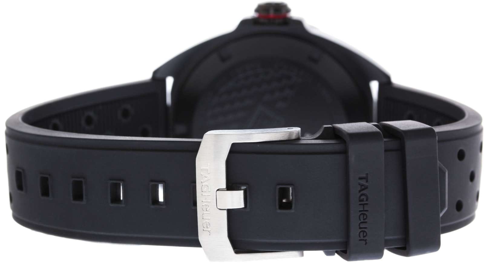 Ремешок из каучука с перфорацией обеспечивает комфортное ношение благодаря дополнительной вентиляции кожи запястья. Классическая застежка-пряжка из нержавеющей стали украшена гравировкой TAG Heuer, подчеркивая премиальность модели.