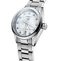 Утончённые часы TAG Heuer Carrera WBN2412.BA0621 созданы для стильных и смелых женщин. Циферблат с белым перламутровым циферблатом, часовыми метками из 11 бриллиантов (0,088 карата) и стрелками с родиевым покрытием. Механический механизм (автоматический калибр) с высокой точностью производится целиком в стенах компании. Стальной корпус с диаметром 29 мм. Сапфировое стеклоСапфировое стеклоПрочный и надёжный материал из кристалла сапфира синтетического происхождения, характеризующийся особой твёрдостью и устойчивостью к царапинам и повреждениям. с антибликовым покрытием, устойчивое к появлению царапин, обладающее высокой прозрачностью. На стрелки и метки нанесено люминесцентное покрытиеЛюминесцентное покрытиеПозволяет считывать показания времени в темноте. Производители наносят на стрелки, часовые индексы, безель или поверхность циферблата светонакопительный состав, дающий холодное свечение.. Класс водозащиты: 100 метров, позволит плавать, нырять и заниматься другими водными видами спорта. Браслет с раскладной застёжкойРаскладная застёжкаТакой тип застёжки используется только на браслетах из металла. Она никогда не раскрывается полностью, происходит разделение на 2 и более частей. Раскладывающая застёжка снизит вероятность потери часов к минимуму.. Часы с автоматическим механизмом Calibre 9 имеют обновленный, более эргономичный дизайн корпуса и браслета.
