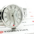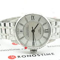 Утончённая модель имеет действительно шикарное исполнение циферблата с римскими цифрами, где лаконичность переплетается с великолепием и изяществом. По окружности он дополнен характерным для линейки узором, в середине расположена вставка из белого перламутра. Циферблат инкрустирован 32 бриллиантами цвета Top Wesselton в 0, 064 карат, их сияние никого не оставит равнодушным. Внутри корпуса из нержавеющей стали 316L находится автоматический механизм ETA Powermatic 80Powermatic 80Эксклюзивный калибр от швейцарской компании ETA с увеличенным запасом хода до 80 часов за счёт удлинённой заводной пружины. Характеризуется улучшенной системой спуска со сниженным трением. с запасом хода 80 часов. Движения деталей прослеживаются сквозь прозрачную заднюю крышку, оформленную узором «женевские волны». Стекло из сапфира с двусторонней антибликовой обработкой. Надёжный стальной браслет. Водонепроницаемость до 5 бар. . Апертура даты. Габариты: 32 x 32 x 10,7 мм.