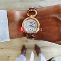 Наручные часы в классическом стиле отличаются лаконичным исполнением, но отдельные детали добавляют роскоши. Модель инкрустирована 12 бриллиантами в 0,0156 карат, расположенными по окружности циферблата. Оригинальный браслет с кольцевидными звеньями и корпус имеют PVD-покрытиеPVDУльтратонкое покрытие наносится в технике вакуумного напыления, сочетает в себе нитрид титана особой прочности со слоем золота или оксида хрома. Несёт в себе декоративную или защитную функцию. оттенка розового золота. Кварцевый калибр ETA F03.111 с 3 камнями. Водостойкость 5 бар. Круглое окошко даты. Габариты: 30 x 30 x 6,35 мм.