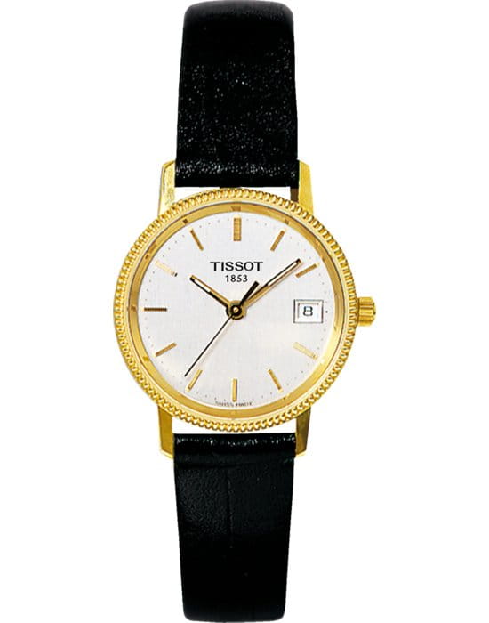 TISSOT T71311531 - женские кварцевые золотые наручные часы Корпус этих часов небольшого размера (24 мм) и выполнен из 18-каратного желтого золота Модель TISSOT T71311531 имеет устойчивое к царапинам сапфировое стекло, кожаный ремешок , цвет циферблата белый Калибр механизма: ETA E61111 Класс водозащиты: 30 м /3 АТМ Дополнительные функции и особенности: отображение числа Полная заводская комплектация TISSOT: оригинальные часы, фирменная коробка, инструкция, сервисная книжка, роман о часовой фабрике, миникаталог, замшевый фирменный чехол черного цвета для хранения и/или переноски часов, кассовый и товарный чеки Международная гарантия 2 года Производство и сборка: Швейцария