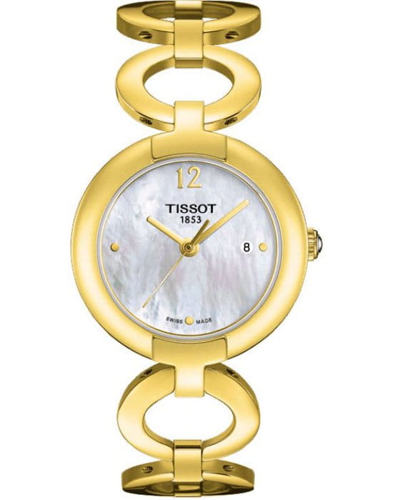 Pinky by Tissot: Само название этой модели пронизано женственностью Это больше, чем просто часы Изделие, свободно охватывающее запястье, производит впечатление элегантного браслета Его великолепные круглые звенья различного размера придают часам особый шарм Очаровательная застежка идеально интегрируется в корпус браслета, словно маскируясь в нем, и дополняет его роскошный стиль Литой корпус с аккуратной отделкой представляет собой завершающий штрих облика часов Для сдержанного и элегантного женского образа подойдет цветная модель из полированного серебра Более игривая и стильная версия часов представлена в полированном корпусе с сатинированной отделкой Ценительницам изысканных аксессуаров придутся по вкусу часы с двухцветной отделкой или радикальный вариант в виде ювелирных часов, полностью выполненных из золота Стоит отметить разнообразное оформление циферблатов, украшенных арабесками в форме звеньев браслета или покрытых белым или черным лаком Каждый из циферблатов дополнен тремя метками в положениях «3», «6» и «9 часов» Часы станут идеальным подарком для Вас или Вашего любимого человека