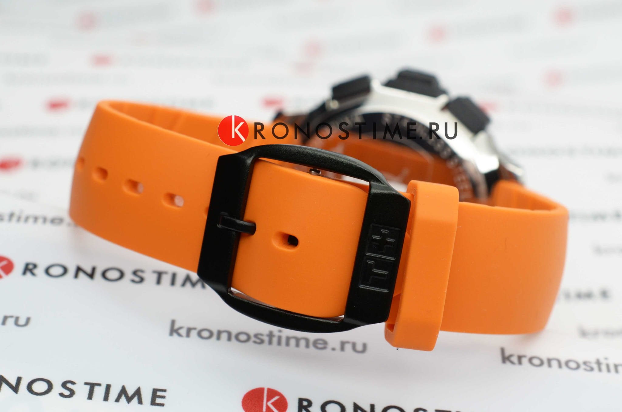 Наручные часы отличаются ярким исполнением, органично смотрятся оранжевый и чёрный цвет. Они имеют сенсорное сапфировое стеклоСапфировое стеклоПрочный и надёжный материал из кристалла сапфира синтетического происхождения, характеризующийся особой твёрдостью и устойчивостью к царапинам и повреждениям., позволяющее управлять всеми функциональными возможностями аксессуара. Среди них хронографХронографФункция позволяет измерять отрезки времени с особой точностью: часы, минуты, секунды. Верным признаком хронографа является наличие на циферблате 3 дополнительных окошек-счётчиков., компас, календарь приливов и отливов, GMTGMTОтображение времени второго часового пояса.Такая функция особенно актуальна для путешественников и бизнесменов,которые общаются с людьми из разных стран,теперь вы всегда будете знать,какой час у вашего партнёра или близкого человека., таймерТаймерОтсчитывает секунды в обратном направлении в заданном интервале времени., будильник. Модель поможет не растеряться в путешествии и выдерживать городской ритм. Кварцевый швейцарский механизм ETA E49.301. Водостойкость 10 бар. Прочный каучуковый ремешок. Габариты: 42,15 x 42,15 x 13,5 мм.