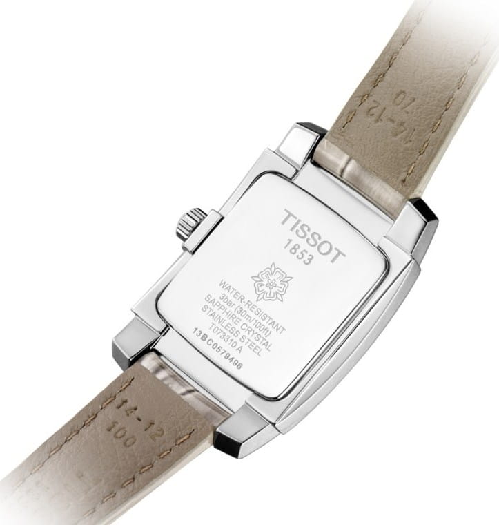 TISSOT T0733101611601 T-Trend T10 Quartz - женские кварцевые наручные часы Корпус этих часов небольшого размера (254 мм) и выполнен из нержавеющей стали L316 металлического цвета Модель TISSOT T0733101611601 T-Trend T10 Quartz имеет устойчивое к царапинам сапфировое стекло, ремешок из натуральной кожи черного цвета, белый циферблат Циферблат украшен 6 бриллиантами Калибр механизма: ETA F03111 Класс водозащиты: 30 м / 3 АТМ (защита от брызг и случайных капель) Дополнительные функции и особенности: нет Полная заводская комплектация TISSOT: оригинальные часы, фирменная коробка, инструкция, сервисная книжка, роман о часовой фабрике, миникаталог, замшевый фирменный чехол черного цвета для хранения и/или переноски часов, кассовый и товарный чеки Международная гарантия 2 года Производство и сборка: Швейцария