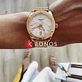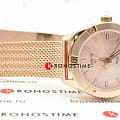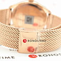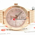 Оригинальный браслет миланского плетения стильно смотрится на запястье, особую привлекательность модель имеет благодаря PVD-покрытиюPVDУльтратонкое покрытие наносится в технике вакуумного напыления, сочетает в себе нитрид титана особой прочности со слоем золота или оксида хрома. Несёт в себе декоративную или защитную функцию. в цвете розового золота. В тон выполнен перламутровый циферблат. Кварцевый калибр швейцарского производства ETA 955.412. Ультрапрочное стекло из сапфира. Люминесцентная подсветкаЛюминесцентное покрытиеПозволяет считывать показания времени в темноте. Производители наносят на стрелки, часовые индексы, безель или поверхность циферблата светонакопительный состав, дающий холодное свечение.. Отображение числа, EOLEOLПредставляет собой систему, уведомляющую владельца часов о необходимости замены элемента питания. За 2 недели до полного разряда батарейки секундная стрелка перестаёт ходить чётко и начинает перепрыгивать на 3-4 деления.. Габариты: 36 x 36 x 9 мм.