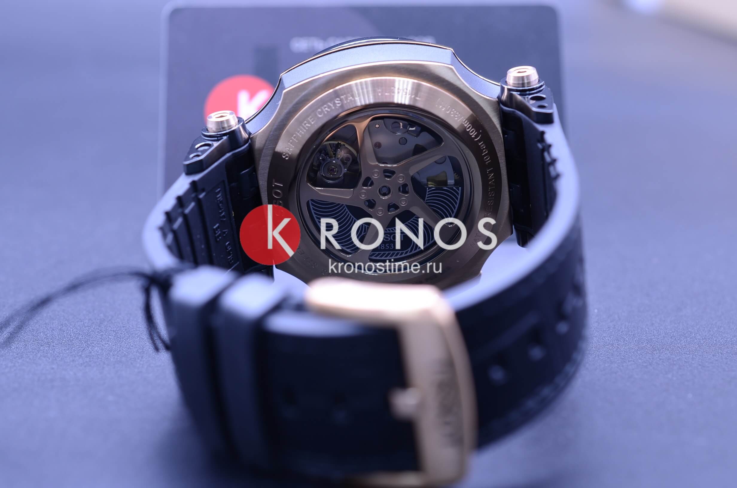 Рельефный безельБезельВнешний ободок, закрепляющий стекло. В спортивных часах так называется поворотное кольцо с делениями на циферблате, выполняет роль таймера – замеряет отрезки времени на шкале. Неподвижный безель – элемент декора. Однонаправленно вращающийся безель на дайверских часах позволяет фиксировать моменты погружения и выныривания на поверхность. напоминает тормозной диск, внушительный циферблат с крупными элементами дизайна шикарно смотрится на мужском запястье. Работа часов запускается от автоматического калибра C01.211, сохраняющего запас хода до 45 часов. Корпус имеет устойчивое к истиранию PVD-покрытиеPVDУльтратонкое покрытие наносится в технике вакуумного напыления, сочетает в себе нитрид титана особой прочности со слоем золота или оксида хрома. Несёт в себе декоративную или защитную функцию. в цвете золота. Прозрачная задняя крышка в виде колеса. Стрелки и метки с люминесцентной подсветкойЛюминесцентное покрытиеПозволяет считывать показания времени в темноте. Производители наносят на стрелки, часовые индексы, безель или поверхность циферблата светонакопительный состав, дающий холодное свечение.. Стильный и практичный ремешок из натуральной кожи с внутренней стороной из каучука с влагоотталкивающими свойствами. Антибликовое покрытие сапфирового стекла. ХронографХронографФункция позволяет измерять отрезки времени с особой точностью: часы, минуты, секунды. Верным признаком хронографа является наличие на циферблате 3 дополнительных окошек-счётчиков., секундомер, , индикация числа. Габариты: 48,8 x 45 x 16,6 мм.