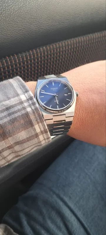 Tissot PRX 40mm (модель T137.410.11.041.00) – элегантные мужские часы, сочетающие стильный дизайн и надёжность. Корпус диаметром 40 мм выполнен из нержавеющей стали 316L, что обеспечивает долговечность и комфорт при ношении. Синий циферблат с эффектом солнечных лучей защищён сапфировым стекломСапфировое стеклоПрочный и надёжный материал из кристалла сапфира синтетического происхождения, характеризующийся особой твёрдостью и устойчивостью к царапинам и повреждениям., устойчивым к царапинам.