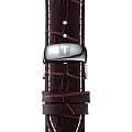 Крупный белый циферблат имеет три дополнительных счётчика хронографаХронографФункция позволяет измерять отрезки времени с особой точностью: часы, минуты, секунды. Верным признаком хронографа является наличие на циферблате 3 дополнительных окошек-счётчиков., что придаёт модели спортивную стилистику. Классический цвет идеально сочетается с тёмно-коричневым ремешком из натуральной кожи, рисунок имитирует кожу крокодила. Часы оснащены кварцевым механизмом ETA G10.211. Сапфировое стекло. Корпус из нержавеющей стали. Секундомер, отображение даты. Габариты: 42 x 42 x 11 мм.