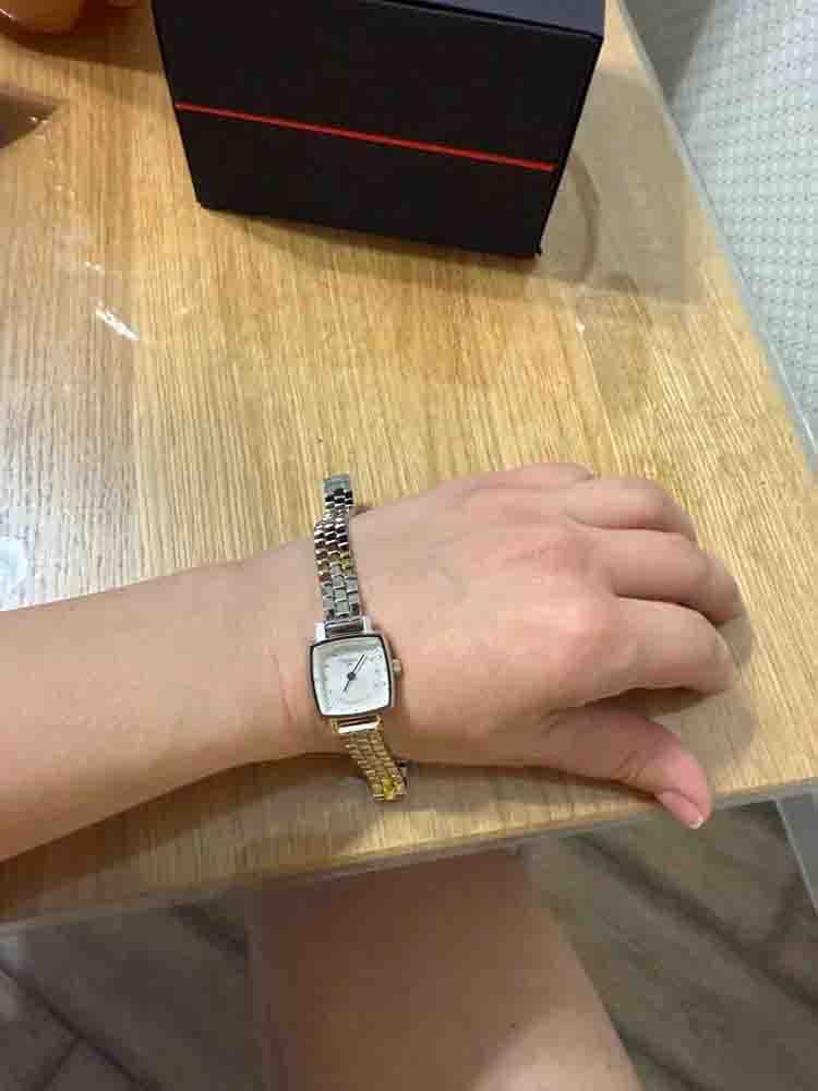 Дизайнеры привнесли оригинальности в оформлении всего: нетипичный корпус-квадрат, привлекательный узор на циферблате, необычный стальной браслет, состоящий из множества мельчайших звеньев. Застёжка «бабочка» с кнопкамиЗастёжка "бабочка"Такой вид застёжки дополняется предохранителями, помогающими избежать случайного раскрытия браслета. Обладают изящным исполнением. . Циферблат инкрустирован 12 бриллиантами - 0.0252 карат, расположенными на месте цифр. Швейцарский кварцевый калибр ETA 901.001 с высокой точностью хода. Стекло из сапфираСапфировое стеклоПрочный и надёжный материал из кристалла сапфира синтетического происхождения, характеризующийся особой твёрдостью и устойчивостью к царапинам и повреждениям. устойчиво к появлению царапин. Водонепроницаемость до 3 бар. Габариты: 20 x 20 x 7,1 мм.