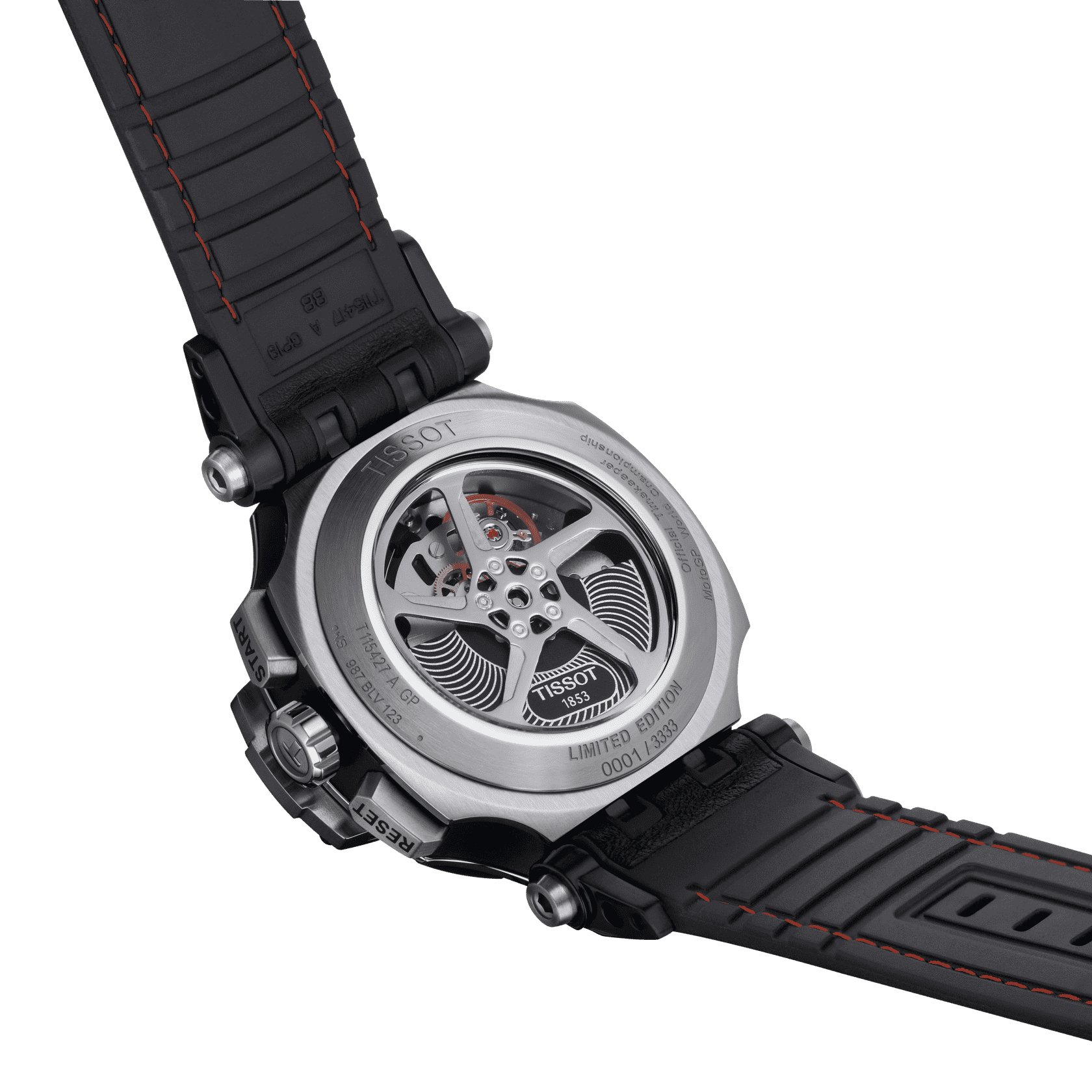 Лимитированный выпуск MotoGP (3333 экземпляра) Tissot T-Race MotoGP Automatic Chronograph Limited Edition T115.427.27.057.01, механический механизм (автоматический калибр) с высокой точностью. Сапфировое стекло устойчивое к появлению царапин, обладающее высокой прозрачностью. Класс водозащиты: 100 метров, позволит плавать, нырять и заниматься другими водными видами спорта. Корпус часов изготовлен из стали.
