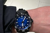Аксессуар характеризуется как дайверские часы, водонепроницаемость сохраняется при давлении до 30 бар на глубине 300 метров. Модель имеет чёрно-синие исполнение, последний оттенок был реализован благодаря PVD-покрытиюPVDУльтратонкое покрытие наносится в технике вакуумного напыления, сочетает в себе нитрид титана особой прочности со слоем золота или оксида хрома. Несёт в себе декоративную или защитную функцию.. Внутри герметичного корпуса с завинчивающейся заводной головкой находится популярный швейцарский калибр Powermatic 80Powermatic 80Эксклюзивный калибр от швейцарской компании ETA с увеличенным запасом хода до 80 часов за счёт удлинённой заводной пружины. Характеризуется улучшенной системой спуска со сниженным трением. с запасом хода до 80 часов. Прозрачная задняя крышка. Вращающийся безельБезельВнешний ободок, закрепляющий стекло. В спортивных часах так называется поворотное кольцо с делениями на циферблате, выполняет роль таймера – замеряет отрезки времени на шкале. Неподвижный безель – элемент декора. Однонаправленно вращающийся безель на дайверских часах позволяет фиксировать моменты погружения и выныривания на поверхность. с минутной шкалой. Люминесцентная подсветкаЛюминесцентное покрытиеПозволяет считывать показания времени в темноте. Производители наносят на стрелки, часовые индексы, безель или поверхность циферблата светонакопительный состав, дающий холодное свечение.. Окошко даты. Габариты: 40 x 40 x 12,5 мм.