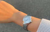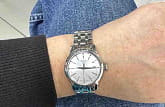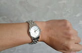 Модель представлена в минималистичном исполнении. Точность хода швейцарского кварцевого механизма ETA F04.115 составляет +/- 20 секунд в месяц. Сапфировое стеклоСапфировое стеклоПрочный и надёжный материал из кристалла сапфира синтетического происхождения, характеризующийся особой твёрдостью и устойчивостью к царапинам и повреждениям. устойчиво к появлению царапин. Корпус и браслет изготовлены из нержавеющей стали 316L. Часы сохраняют водостойкость при давлении 5 бар. Застёжка «бабочка» с кнопкамиЗастёжка "бабочка"Такой вид застёжки дополняется предохранителями, помогающими избежать случайного раскрытия браслета. Обладают изящным исполнением. никогда не расстегнётся случайным образом. Функции: календарь, EOLEOLПредставляет собой систему, уведомляющую владельца часов о необходимости замены элемента питания. За 2 недели до полного разряда батарейки секундная стрелка перестаёт ходить чётко и начинает перепрыгивать на 3-4 деления..