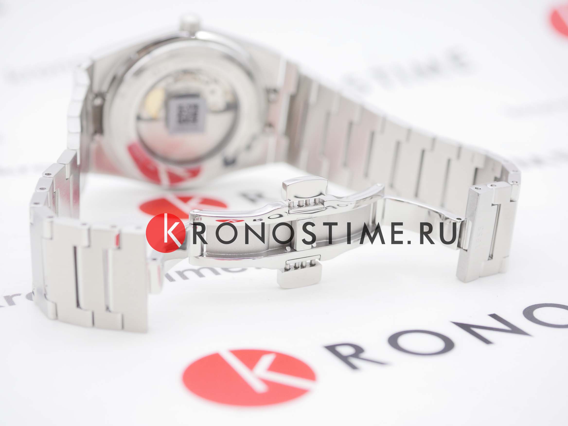 Корпус часов изготовлен из нержавеющей стали марки 316L серебристого цвета. Устойчивое к появлению царапин сапфировое стеклоСапфировое стеклоПрочный и надёжный материал из кристалла сапфира синтетического происхождения, характеризующийся особой твёрдостью и устойчивостью к царапинам и повреждениям. с антибликовым покрытием. Класс водозащиты: 100 метров, позволит плавать, нырять и заниматься другими водными видами спорта. Браслет серебристого цвета с застёжкой-бабочкой с кнопкамиЗастёжка "бабочка"Такой вид застёжки дополняется предохранителями, помогающими избежать случайного раскрытия браслета. Обладают изящным исполнением. для расстегивания браслета.