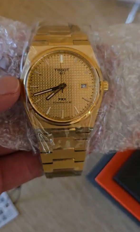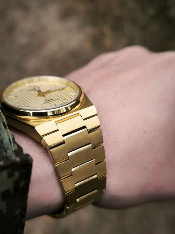Tissot PRX Powermatic 80 (модель T137.407.33.021.00) – это элегантные часы, сочетающие современный дизайн с высокими технологиями. Корпус диаметром 40 мм выполнен из нержавеющей стали 316L с жёлтым PVD-покрытиемPVDУльтратонкое покрытие наносится в технике вакуумного напыления, сочетает в себе нитрид титана особой прочности со слоем золота или оксида хрома. Несёт в себе декоративную или защитную функцию., придающим часам роскошный вид. Шампанского оттенка циферблат украшен узором "шашечки" и защищён сапфировым стекломСапфировое стеклоПрочный и надёжный материал из кристалла сапфира синтетического происхождения, характеризующийся особой твёрдостью и устойчивостью к царапинам и повреждениям. с антибликовым покрытиемАнтибликовое покрытиеСлой оксида металла в 0,13-0,3 микрон, благодаря которому стекло часов не бликует и не отражает свет. Антибликовое покрытие уменьшает отражение света в 10 раз, обеспечивая отличную читаемость показателей циферблата., устойчивым к царапинам. Часы оснащены автоматическим механизмом Powermatic 80Powermatic 80Эксклюзивный калибр от швейцарской компании ETA с увеличенным запасом хода до 80 часов за счёт удлинённой заводной пружины. Характеризуется улучшенной системой спуска со сниженным трением. с запасом хода до 80 часов и антимагнитной спиралью баланса из сплава Nivachron™Nivachron™Специально разработанный инновационный сплав Nivachron™ повышает устойчивость часов к воздействию магнитных полей., обеспечивающей высокую точность хода. Браслет из нержавеющей стали с жёлтым PVD-покрытием оснащён застёжкой 'бабочка'Застёжка "бабочка"Такой вид застёжки дополняется предохранителями, помогающими избежать случайного раскрытия браслета. Обладают изящным исполнением. , обеспечивающей надёжную фиксацию и комфорт при ношении. Водонепроницаемость до 10 бар (100 метров) позволяет использовать часы при плавании и других водных активностях.