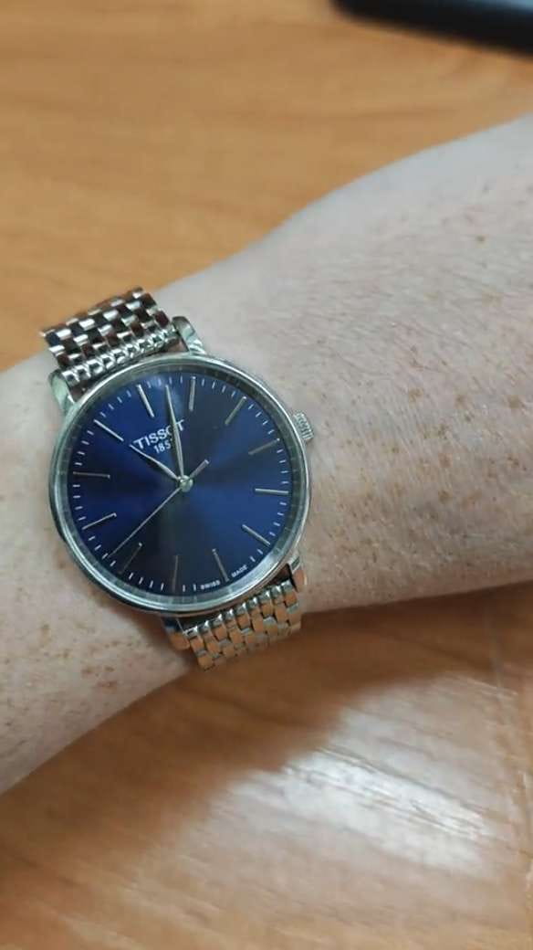 Часы Tissot Everytime - это идеальный аксессуар для любого случая. Классический и неподвластный времени дизайн циферблата, одновременно элегантный и изысканный, делает эти часы в высшей степени современными. Его минимализм позволяет вам дать волю своему воображению при выборе подходящего ремешка для его ношения. Кварцевый механизм с высокой точностью. Сапфировое стеклоСапфировое стеклоПрочный и надёжный материал из кристалла сапфира синтетического происхождения, характеризующийся особой твёрдостью и устойчивостью к царапинам и повреждениям. устойчивое к появлению царапин, обладающее высокой прозрачностью. Класс водозащиты: 50 метров, позволит защитить корпус от случайных брызг или капель дождя. Корпус часов изготовлен из нержавеющей стали. Браслет с застёжкой «бабочка» с кнопкамиЗастёжка "бабочка"Такой вид застёжки дополняется предохранителями, помогающими избежать случайного раскрытия браслета. Обладают изящным исполнением. .