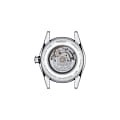 , мягкий блеск идеально гармонирует с ремешком из натуральной телячьей кожи. Классический циферблат дымчатого оттенка с узором «солнечные лучи» декорирован 8 бриллиантами в 0,016 карат, заменяющими индексы. Модель оснащена уникальным автоматическим механизмом ETA Powermatic 48.111, сохраняющим запас хода на 48 часов. Калибр украшен волновыми узорами, его безупречная отделка просматривается сквозь прозрачную заднюю крышку. Сапфировое стекло препятствует образованию царапин. Сохраняется водонепроницаемость до 5 бар. На позиции 3 часов – апертура даты. Габариты: 29 x 29 x 10,4 мм.