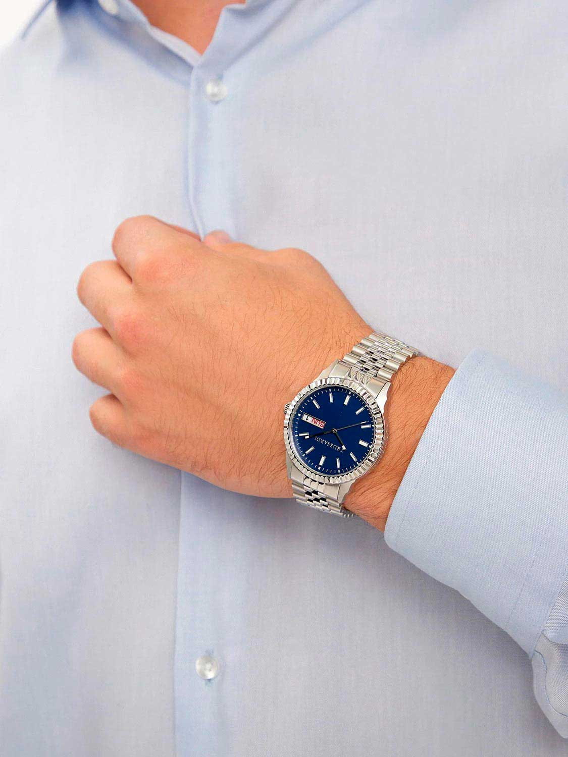 Итальянские мужские часы Trussardi T-Bent R2453141011 - это стильный мужской аксессуар, который сочетает элегантный дизайн и практичность. Корпус выполнен из нержавеющей стали, что обеспечивает долговечность и утончённый внешний вид. Надежное минеральное стеклоМинеральное стеклоМинеральное стекло представляет собой искусственно выращенный минерал кварца. Такое стекло отличается особой устойчивостью к повреждениям и царапинам. Уступает по некоторым качествам сапфировому стеклу. защищает циферблат от царапин и обеспечивает долговечность. Модель оснащена кварцевым механизмом, обеспечивающим высокую точность хода. Браслет из нержавеющей стали с раскладной застёжкойРаскладная застёжкаТакой тип застёжки используется только на браслетах из металла. Она никогда не раскрывается полностью, происходит разделение на 2 и более частей. Раскладывающая застёжка снизит вероятность потери часов к минимуму. обеспечивает комфортное ношение. Водозащита 50 метров позволит защитить корпус от случайных брызг или капель дождя. Окошки даты и дня недели находятся в положении 3 часа. Стрелки и метки оснащены люминесцентным покрытиемЛюминесцентное покрытиеПозволяет считывать показания времени в темноте. Производители наносят на стрелки, часовые индексы, безель или поверхность циферблата светонакопительный состав, дающий холодное свечение., обеспечивающим отличную видимость даже при слабом освещении. Эта модель – отличный выбор для тех, кто ищет сочетание стиля, качества и функциональности. Часы станут не только полезным аксессуаром, но и выразительным элементом вашего имиджа.