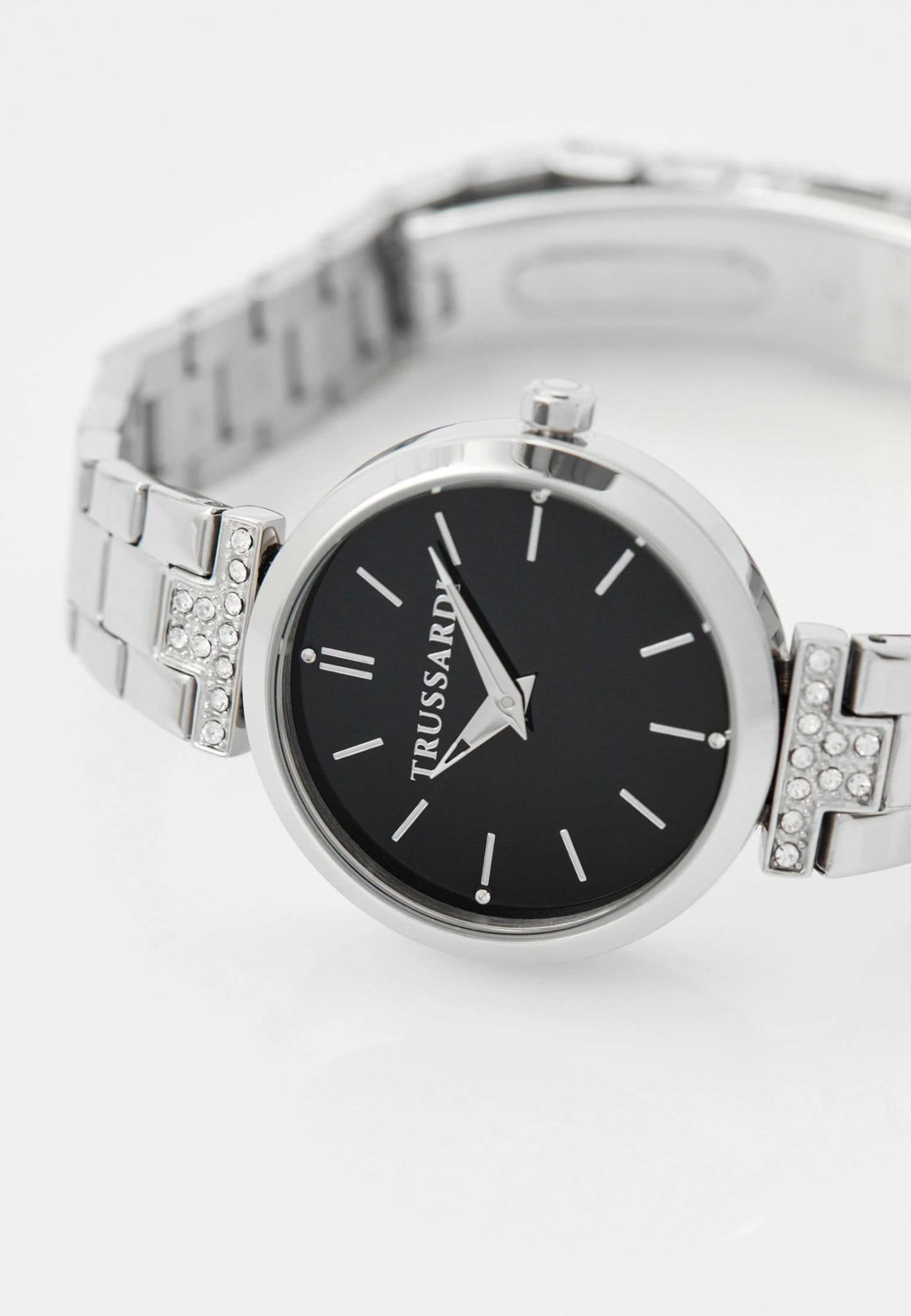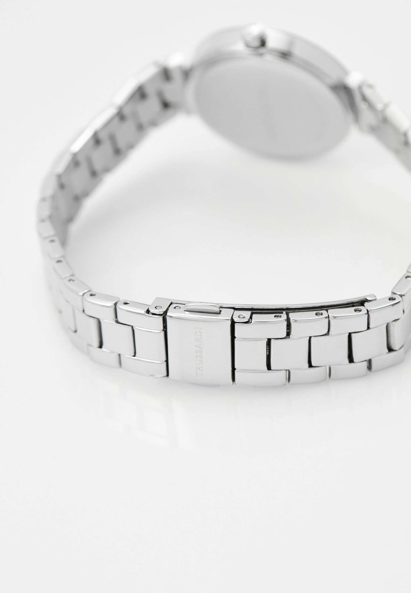 Итальянские женские часы Trussardi Loud R2453164503 - это стильный женский аксессуар, который сочетает элегантный дизайн и практичность. Корпус выполнен из нержавеющей стали, что обеспечивает долговечность и утончённый внешний вид. Надежное минеральное стеклоМинеральное стеклоМинеральное стекло представляет собой искусственно выращенный минерал кварца. Такое стекло отличается особой устойчивостью к повреждениям и царапинам. Уступает по некоторым качествам сапфировому стеклу. защищает циферблат от царапин и обеспечивает долговечность. Модель оснащена кварцевым механизмом, обеспечивающим высокую точность хода. Браслет с кристаллами из нержавеющей стали на раскладной застёжкеРаскладная застёжкаТакой тип застёжки используется только на браслетах из металла. Она никогда не раскрывается полностью, происходит разделение на 2 и более частей. Раскладывающая застёжка снизит вероятность потери часов к минимуму. обеспечивает комфортное ношение. Стрелки оснащены люминесцентным покрытиемЛюминесцентное покрытиеПозволяет считывать показания времени в темноте. Производители наносят на стрелки, часовые индексы, безель или поверхность циферблата светонакопительный состав, дающий холодное свечение., обеспечивающим отличную видимость даже при слабом освещении. Водозащита 50 метров позволит защитить корпус от случайных брызг или капель дождя. Эта модель – отличный выбор для тех, кто ищет сочетание стиля, качества и функциональности. Часы станут не только полезным аксессуаром, но и выразительным элементом вашего имиджа.